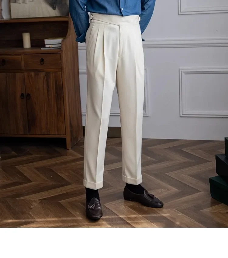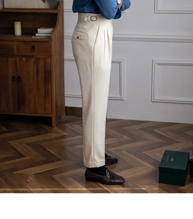 WIAOFELLAS - Spring Autumn Men High Waist Straight Pant Fashion Italian Style Naples Suit Pants England Business Casual Trousers Streetwear