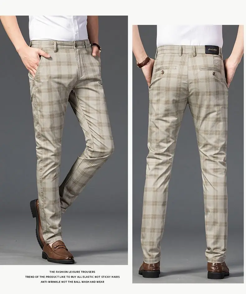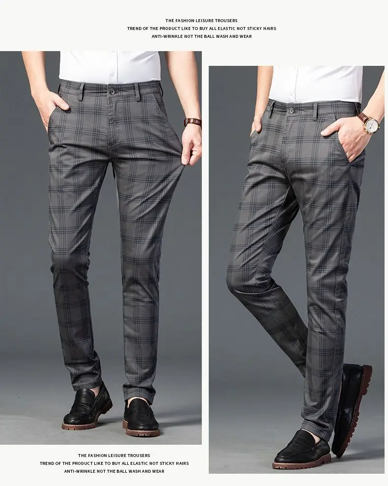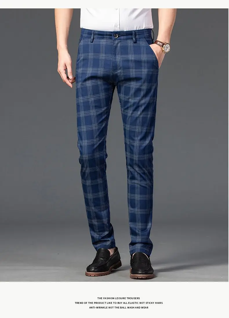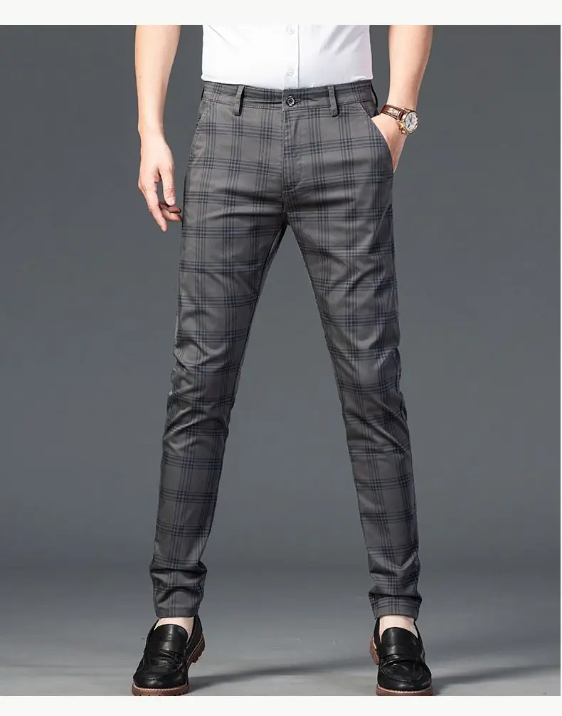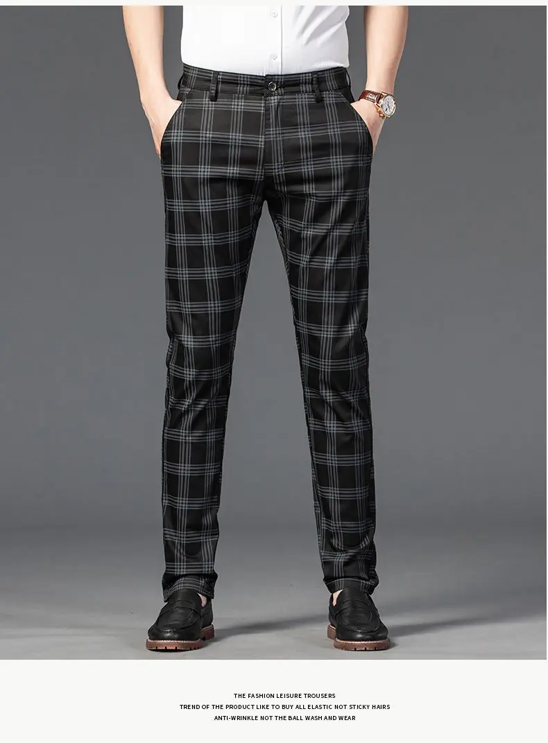 WIAOFELLAS Spring Autumn Men's Trousers Fashion Business Classic Stripe Plaid Straight Suit Trouser Casual Long Formal Straight Suit Pants