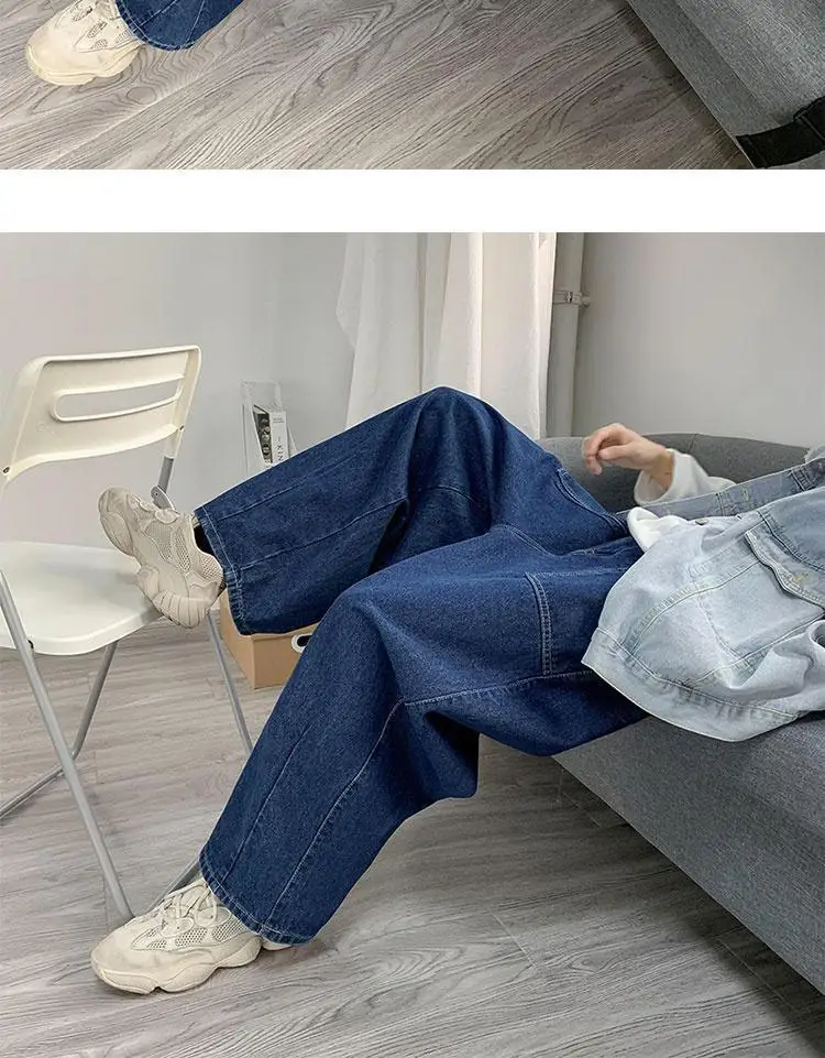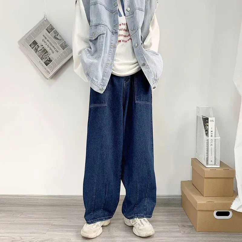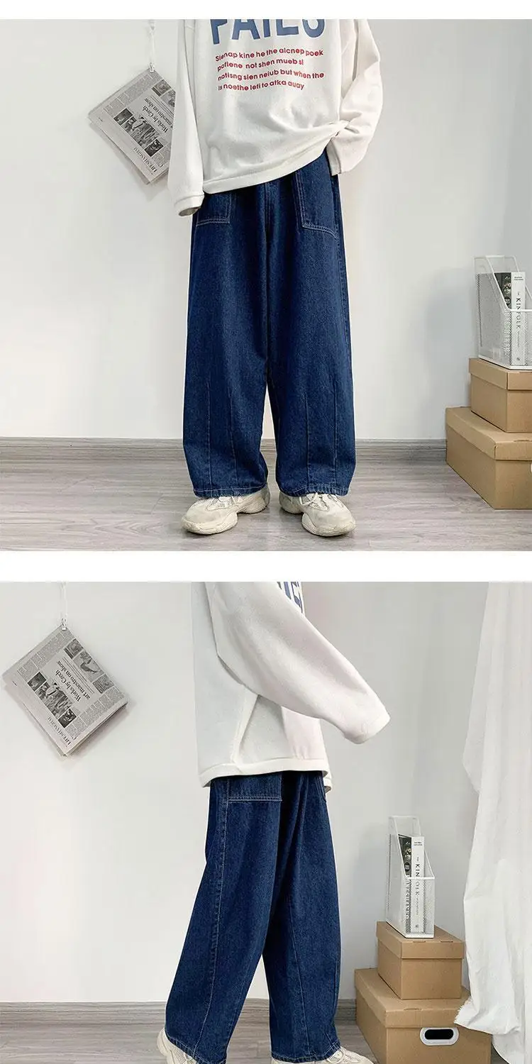 WIAOFELLAS - Spring Autumn New Solid Color Cowboy Straight Pants 2023 Man Japanese Style Loose Fashion Hip Hop Personality Wide Leg Trousers