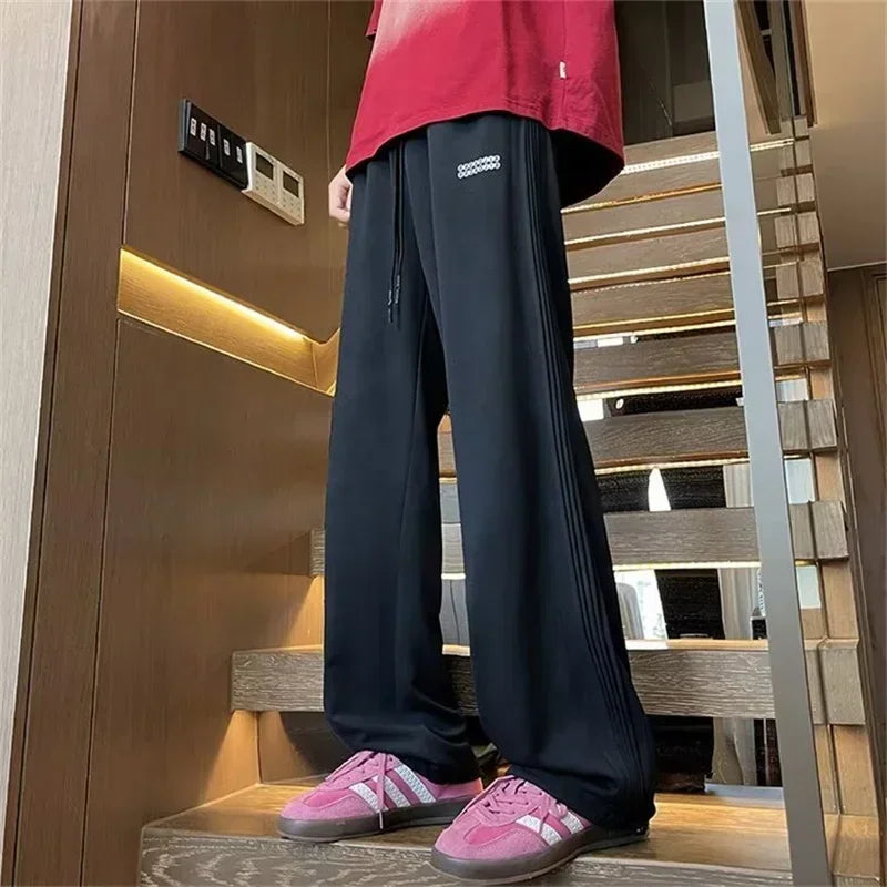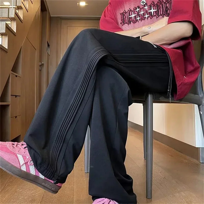 WIAOFELLAS  -  Spring Men's Peated Design Gradient Print Pantalones Hip Hop Fashion Straight Trousers Y2K Vintage Streetwear Gym Sweatpants