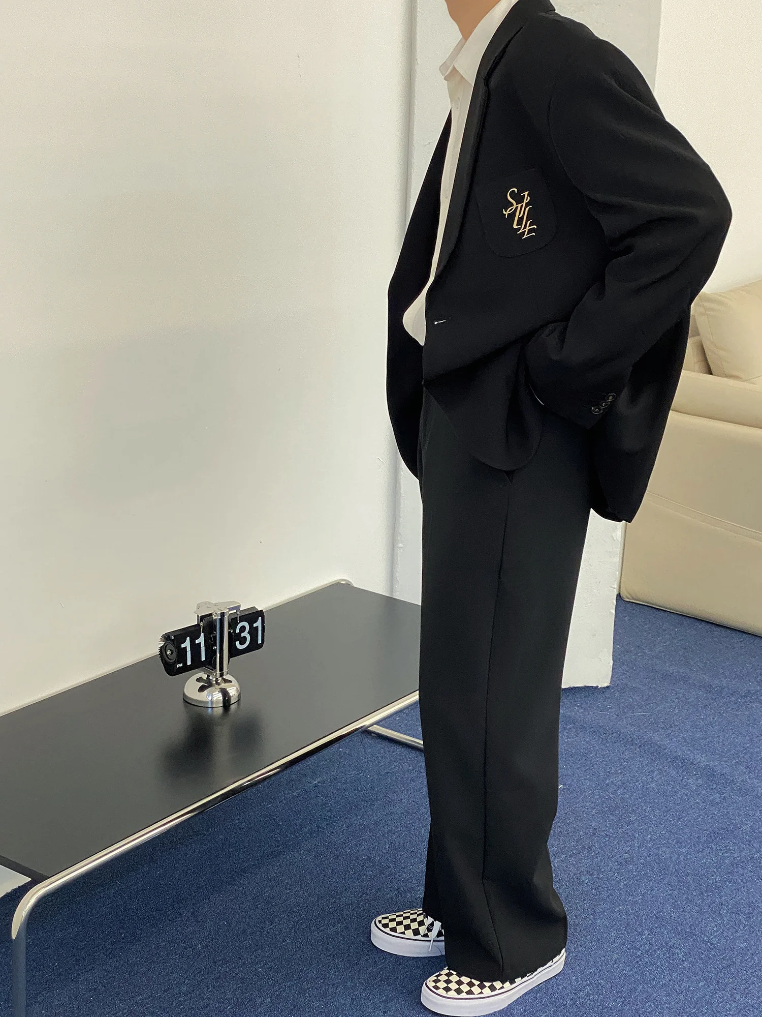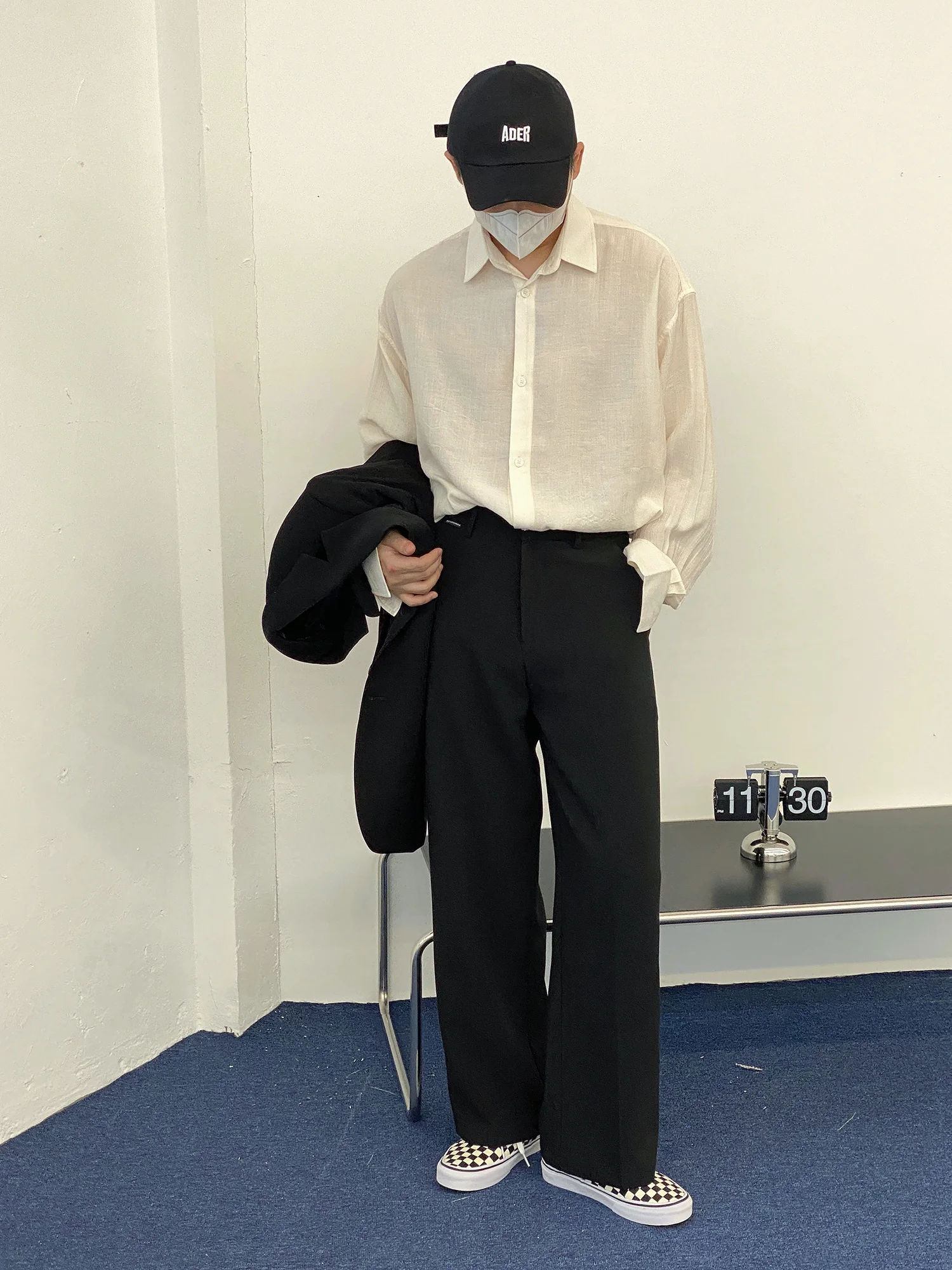 WIAOFELLAS - Spring New Suit Pants Men's Straight Tube Loose Stragith Long Pants Black Grey Khaki Trousers Wide Leg Korean 2Y2220