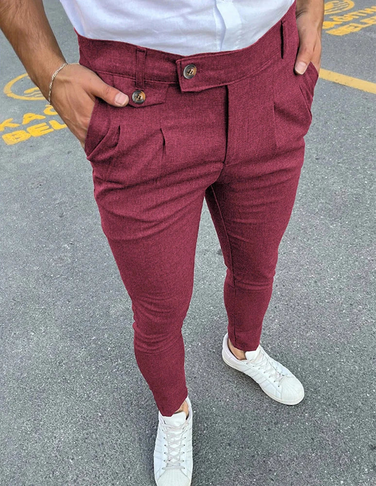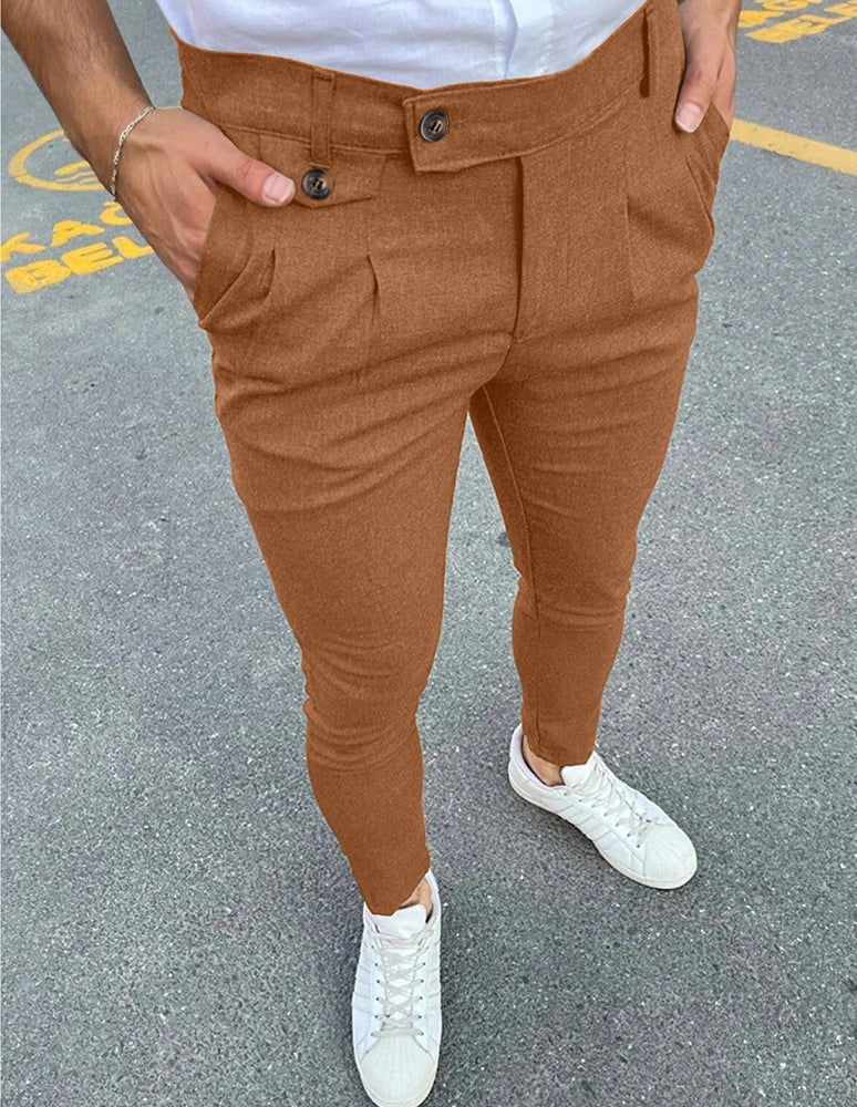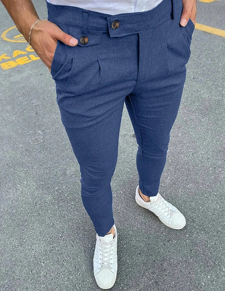 WIAOFELLAS - Spring Summer Fashion Vintage Pencil Pants Men Button Waist Design Business Casual Trousers Fake Pocket Slim fit Suit Pant