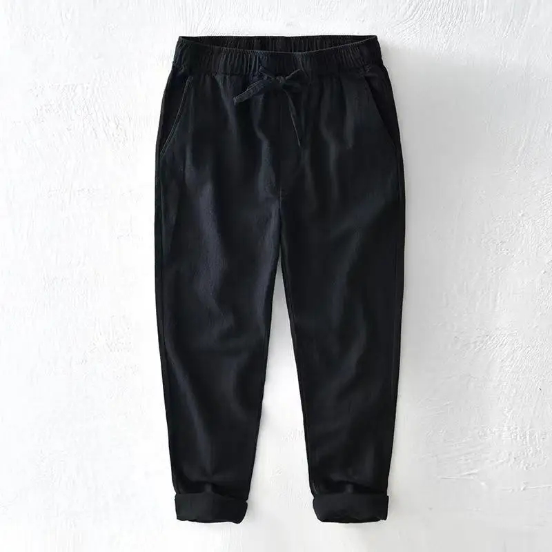 WIAOFELLAS - Spring Summer Men Cotton Linen Pants Solid Trousers Male Loose Hemp Casual Breathable Sports High Quality Pants For Male