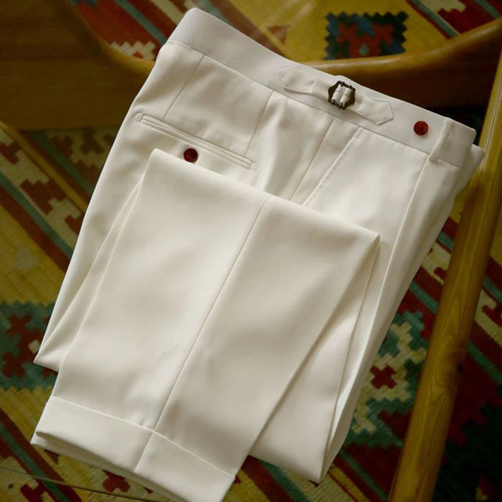 WIAOFELLAS - Spring Summer Men's Pants Fashion Solid Color Suit Trousers Male High Waist Loose Pants Men Business Casual Formal Pants