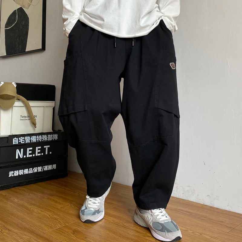 WIAOFELLAS - Spring Wide Men Pants Korean Trousers Oversize Cotton Streetwear Male New Cargo Pants Casual Men Clothing Sweatpants C05