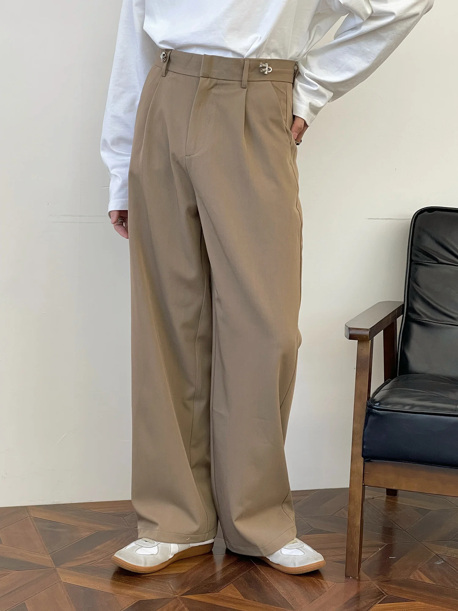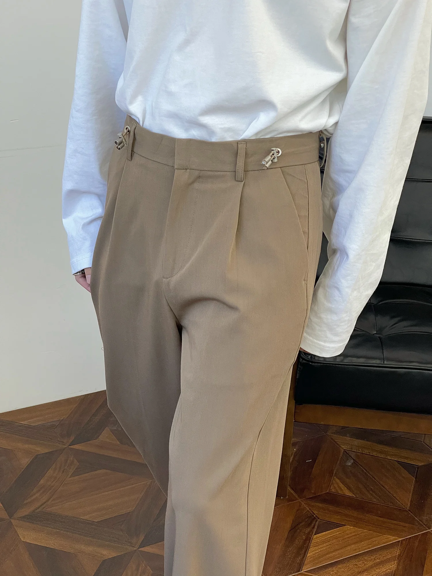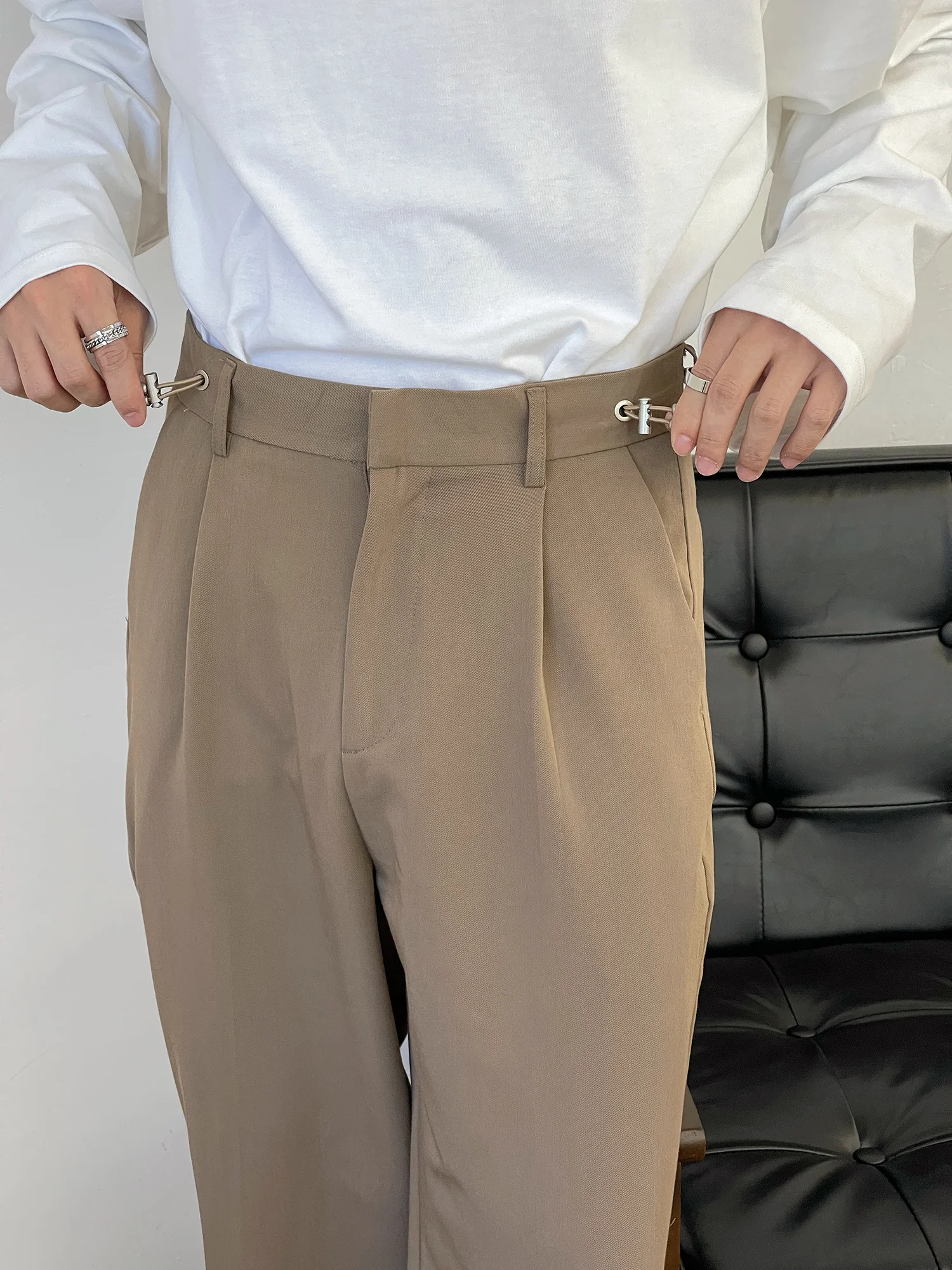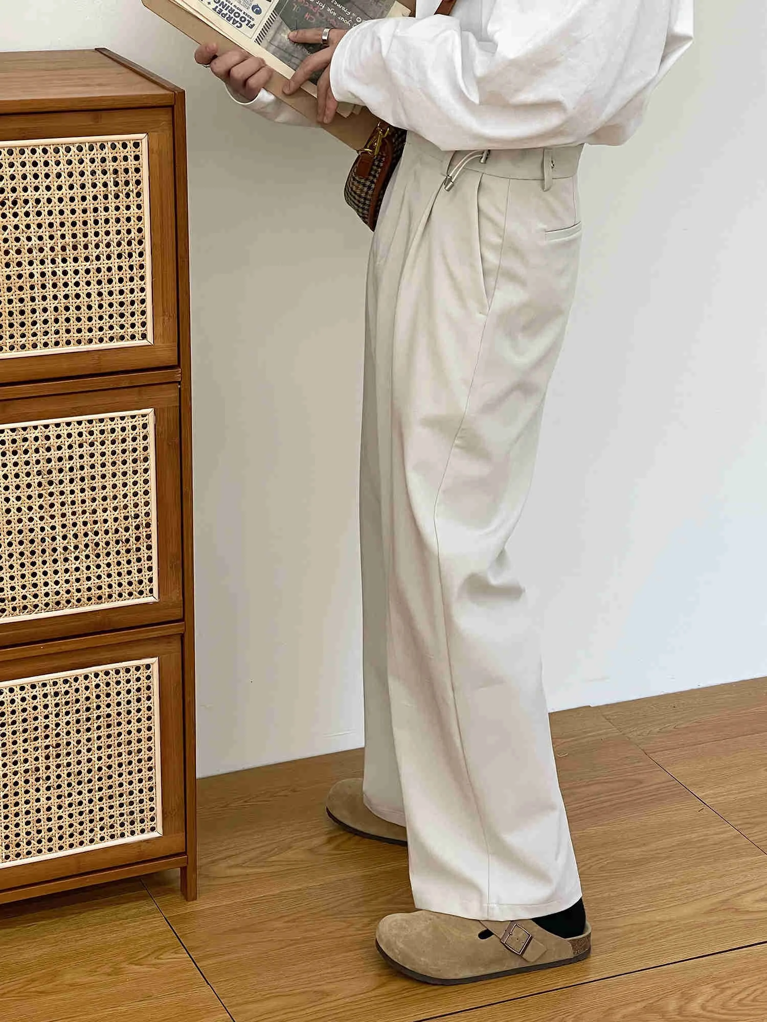 WIAOFELLAS - Straight Men's Elastic Drawstring Waist Suit Pants New High Waist Design Casual Wide Leg Pants Spring Korean 2A0522