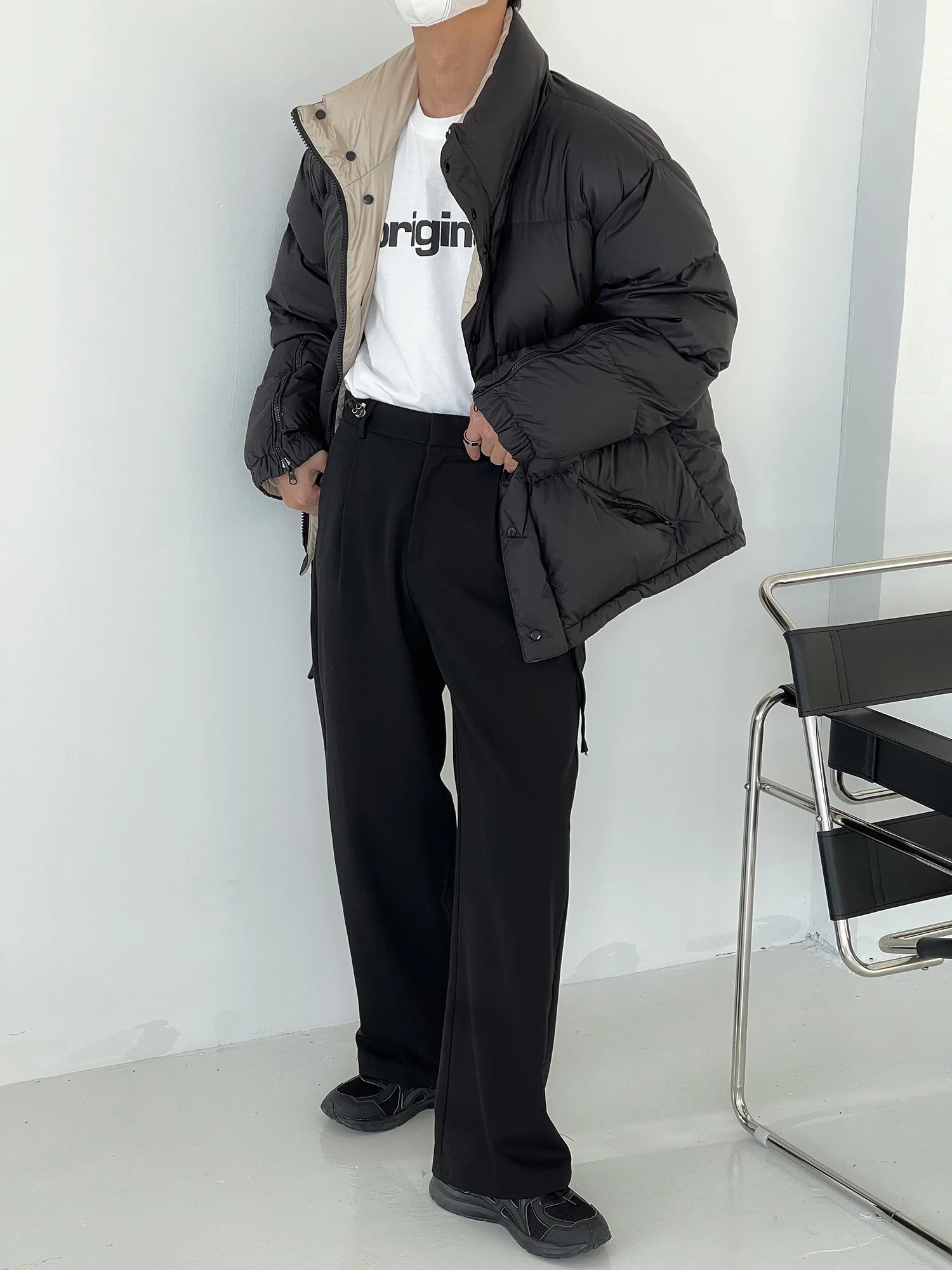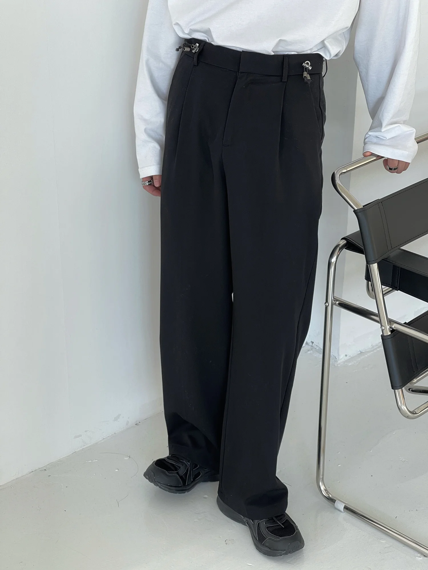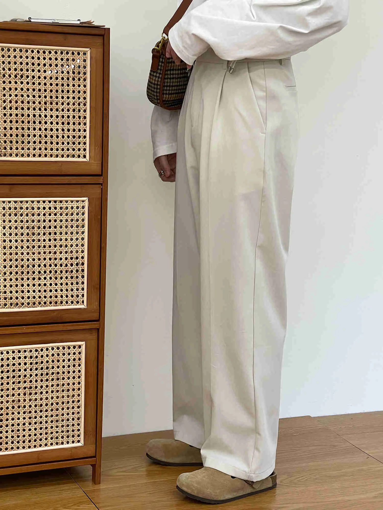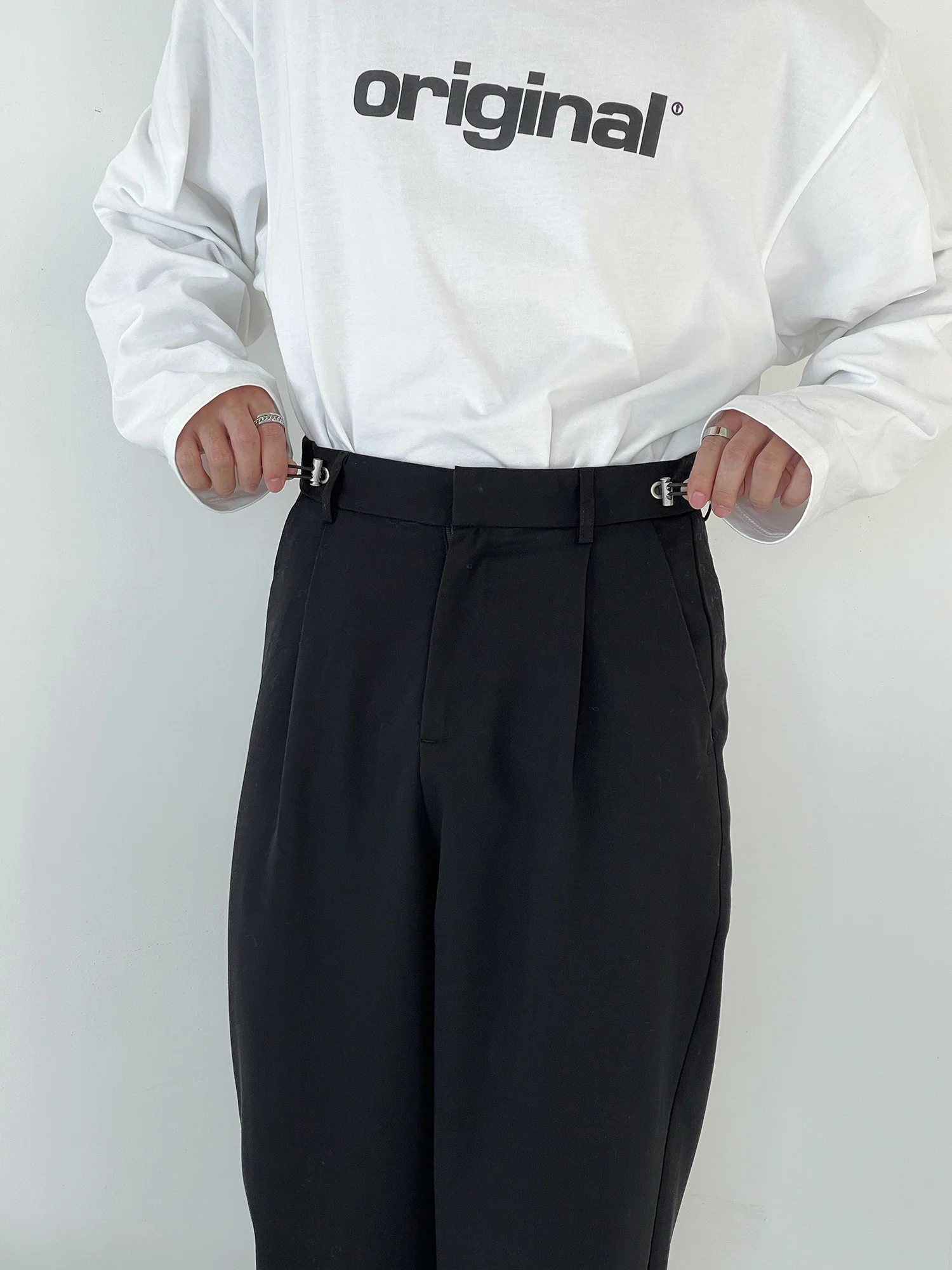 WIAOFELLAS - Straight Men's Elastic Drawstring Waist Suit Pants New High Waist Design Casual Wide Leg Pants Spring Korean 2A0522