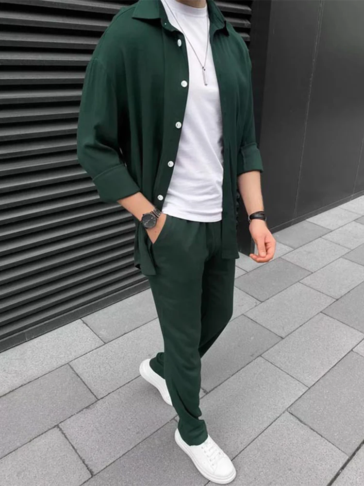 Wiaofellas - Streetwear Fashion Mens Outfits Long Sleeve Jacket And Pants Tracksuits Men Autumn Casual Solid Color Loose Two Piece Sets Male
