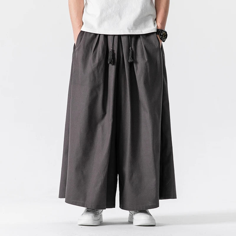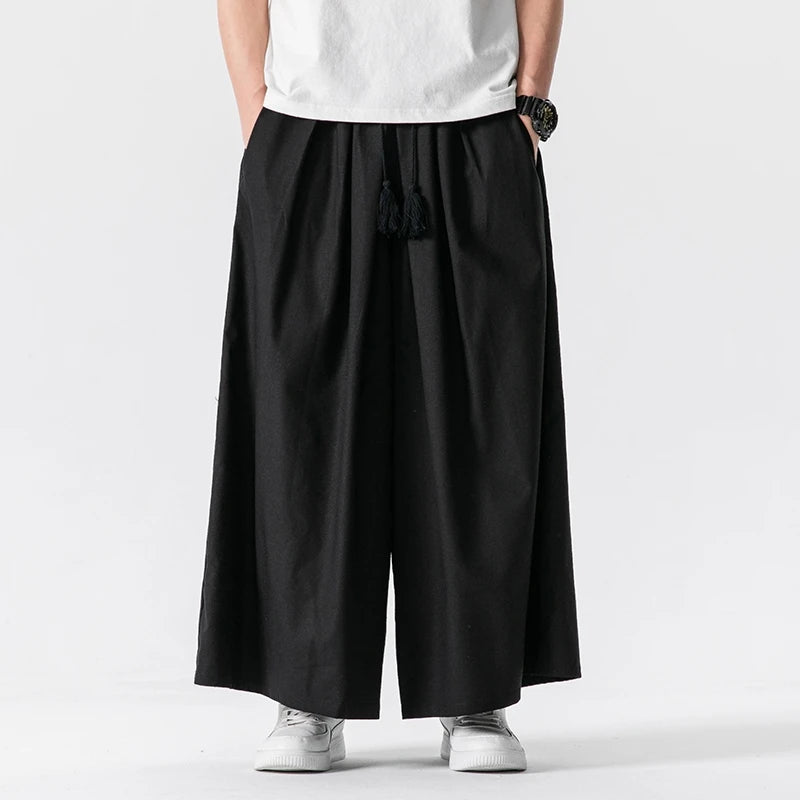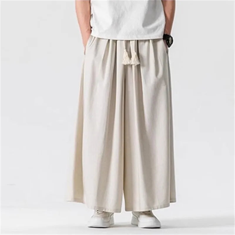 WIAOFELLAS  -  Summer Chinese Style Wide Leg Pants Men Loose Joggers Trousers Male Linen Straight Elastic Waist Hip Hop Full Length Pants