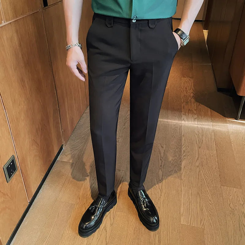 WIAOFELLAS  -  Summer Solid Color Casual Pants Men Slim Casual Business Formal Suit Pants Ankle Length Office Social Trousers Men Clothing