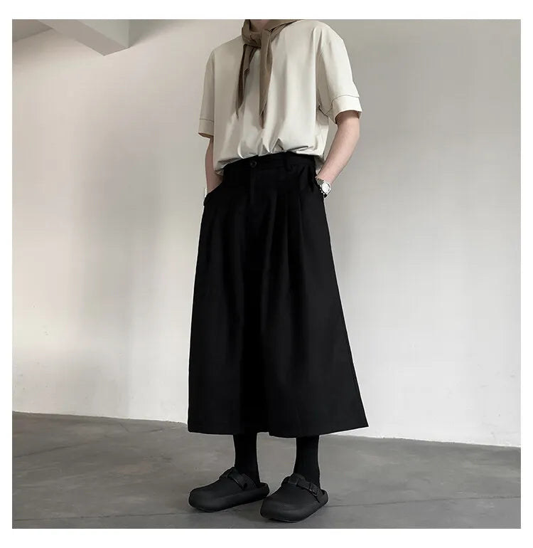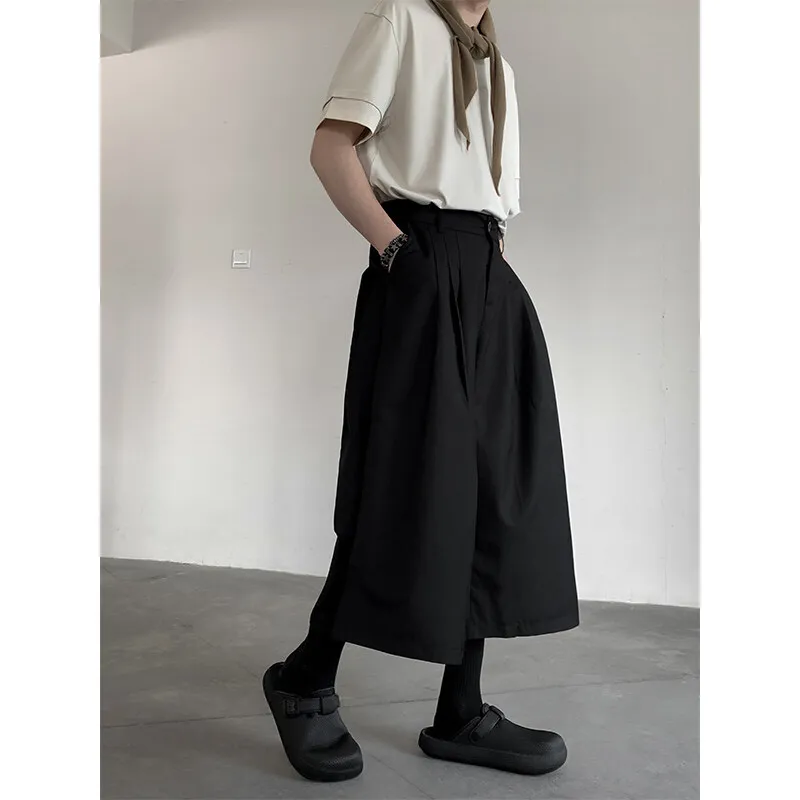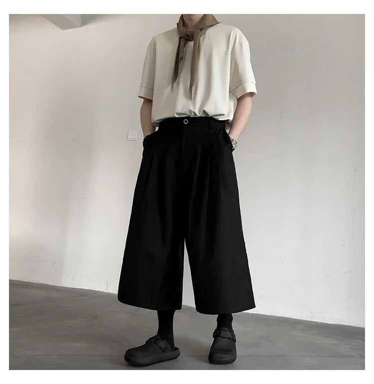 WIAOFELLAS - Summer Wide Leg Cropped Pants Comfy Culottes Street Fashion Trendy Loose Fit Casual Trousers Breathable Oversized Style