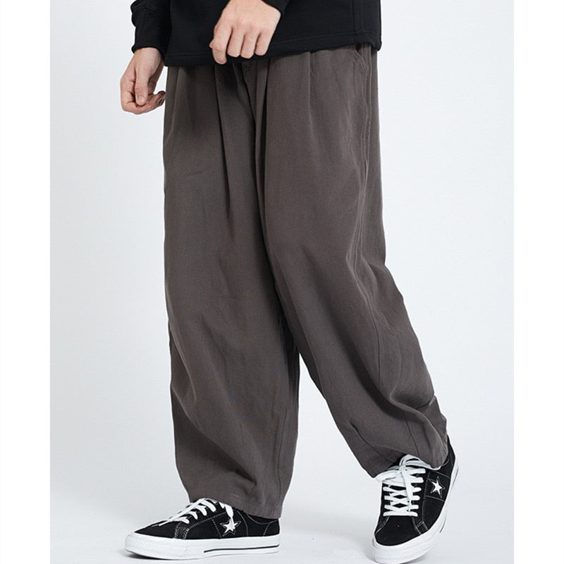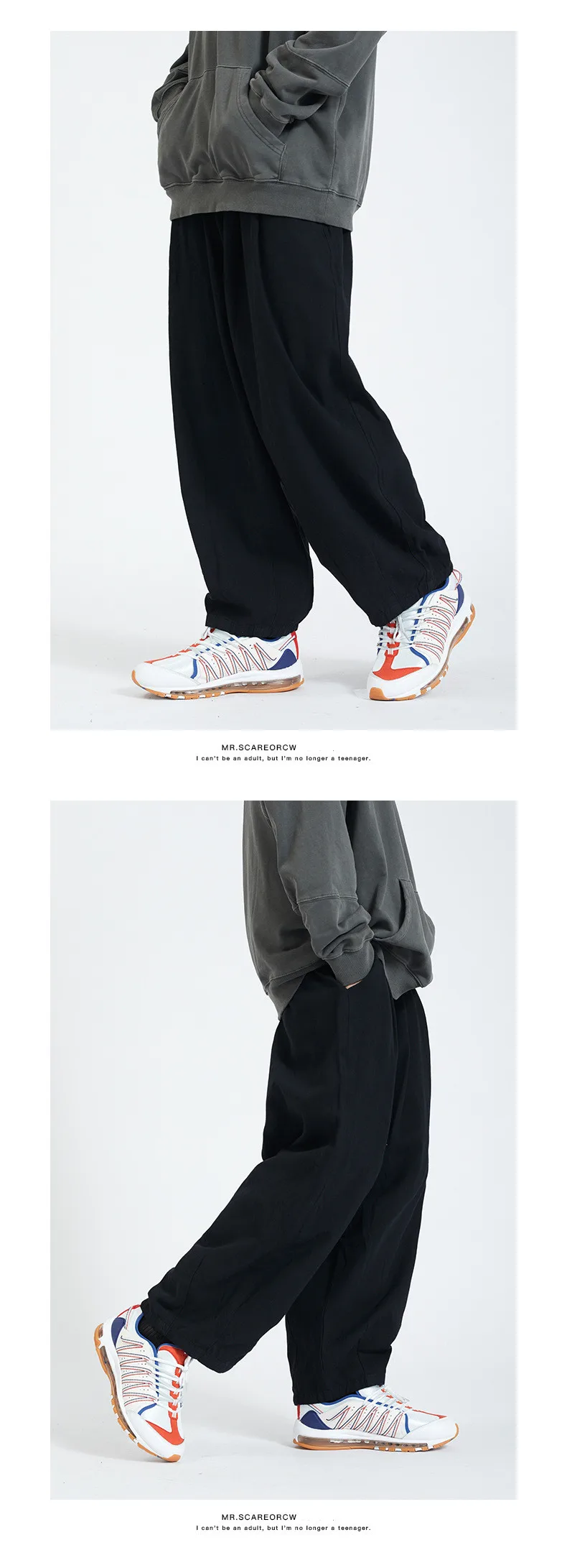 Wiaofellas Tide Brand Straight Wide-leg Casual Pants Men's Autumn Simple Japanese Thin Cotton Trousers High Street Hip-hop Baggy Pants