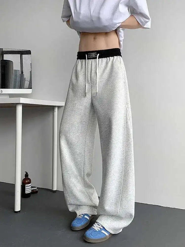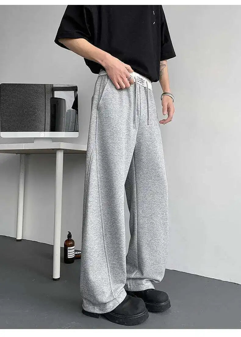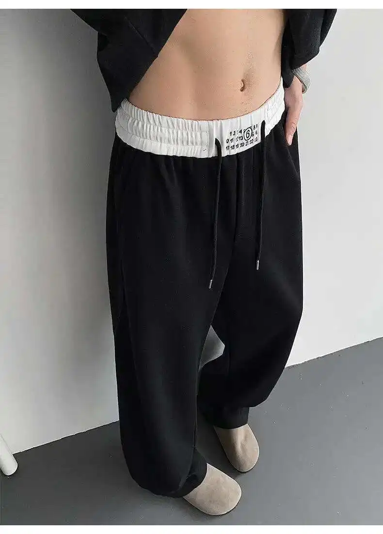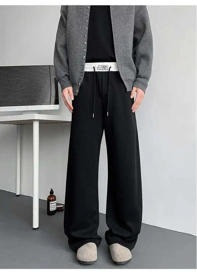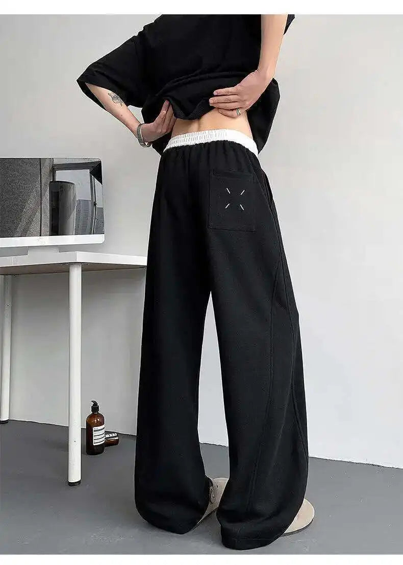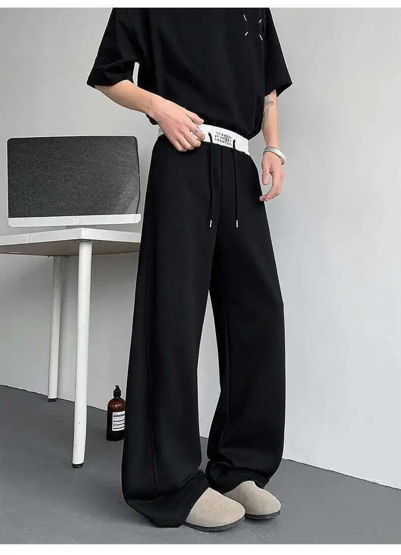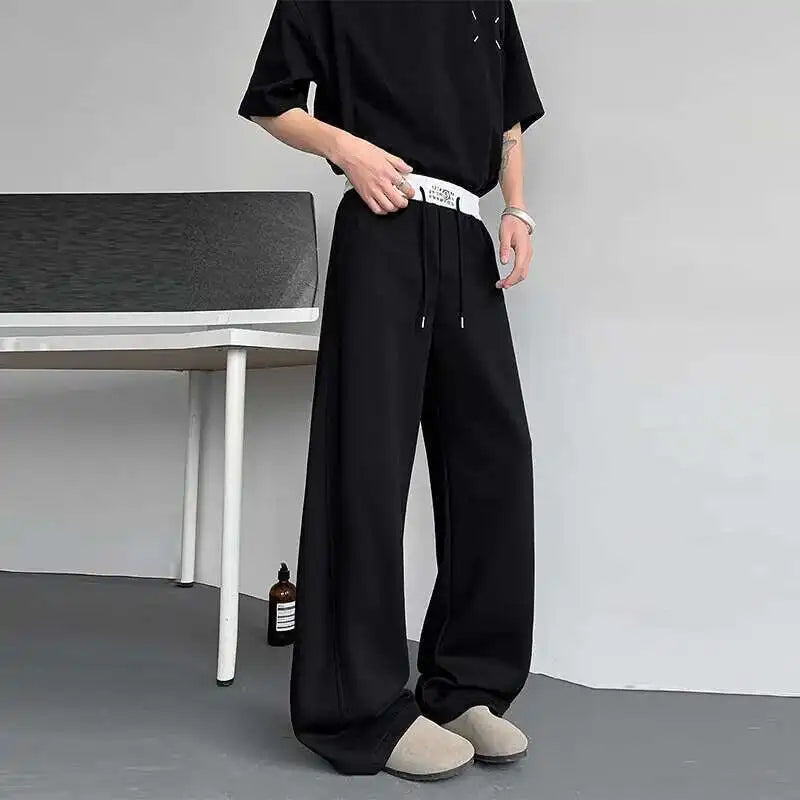 WIAOFELLAS - Trendy Men's Drawstring Design Contrast Color Trousers New Fashion Summer Loose High-waisted Wide Leg Pants Male