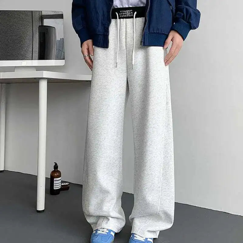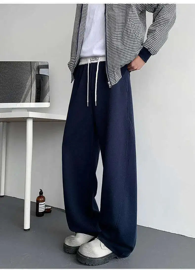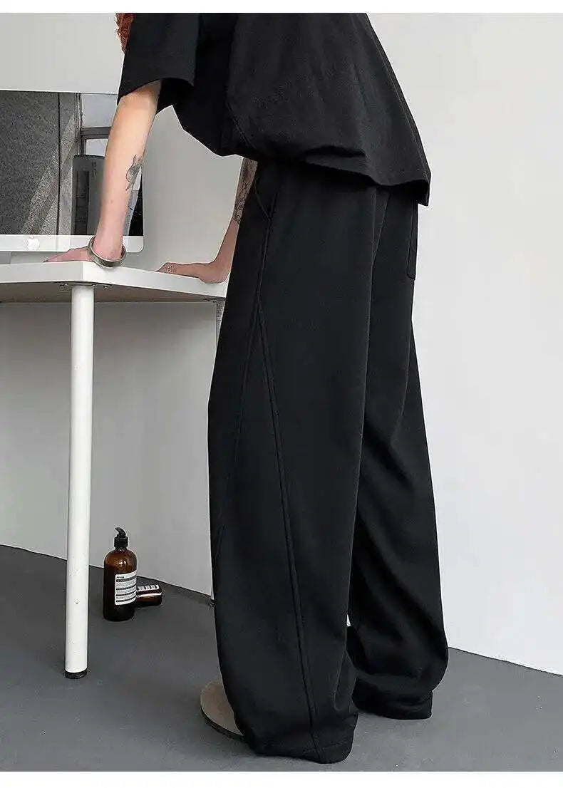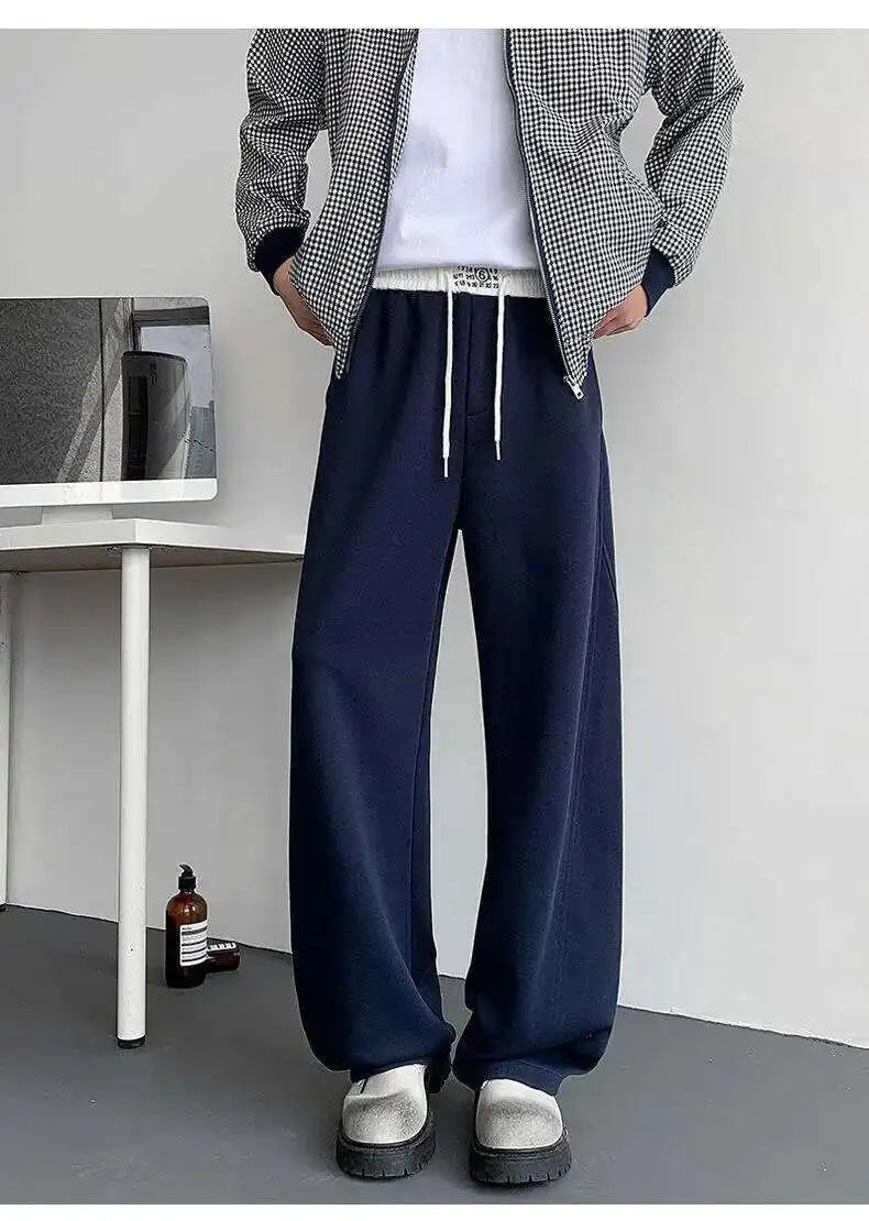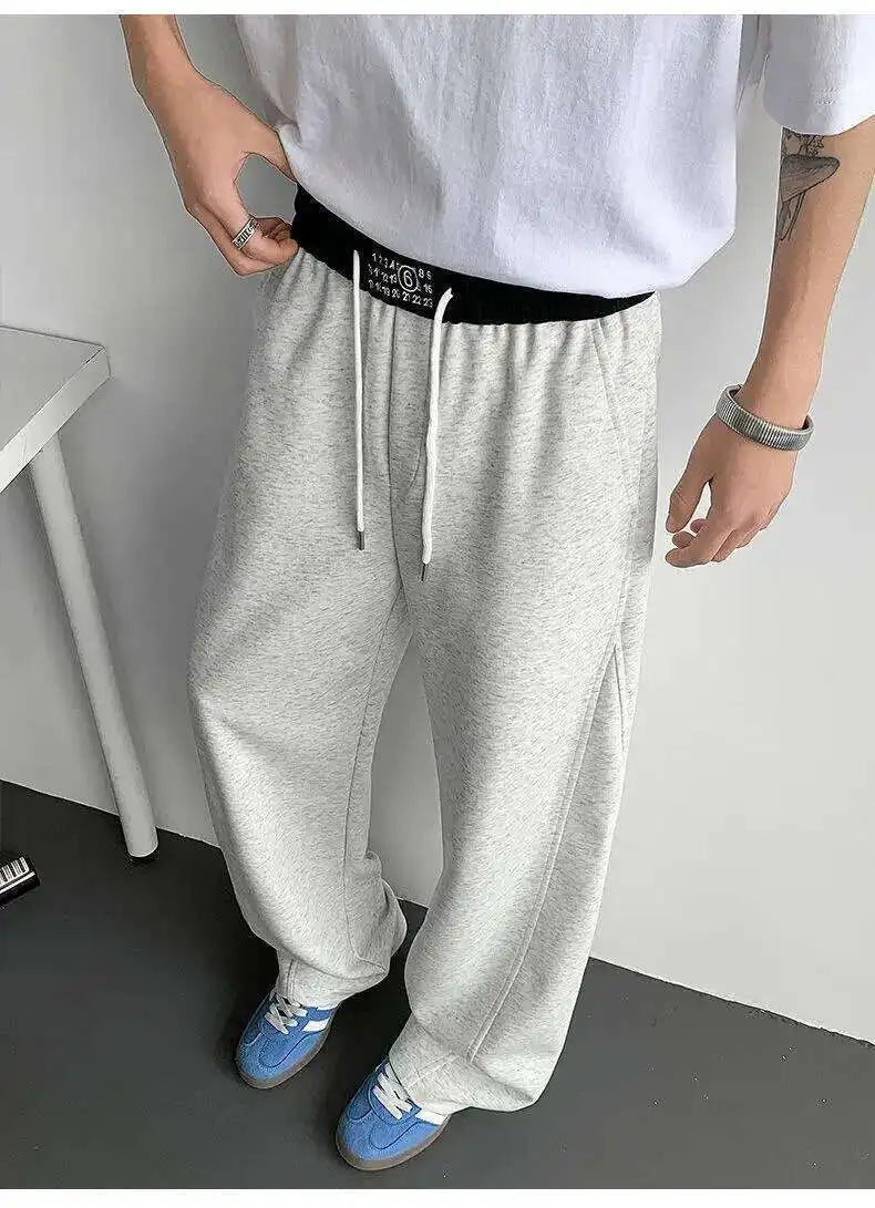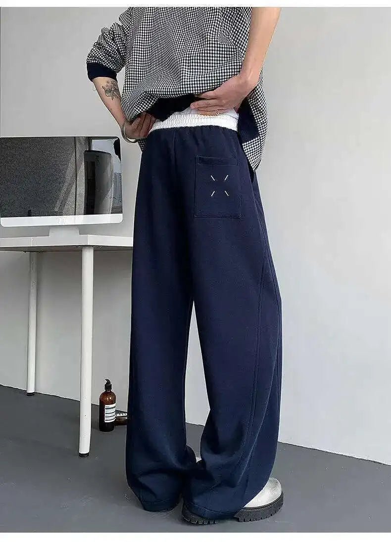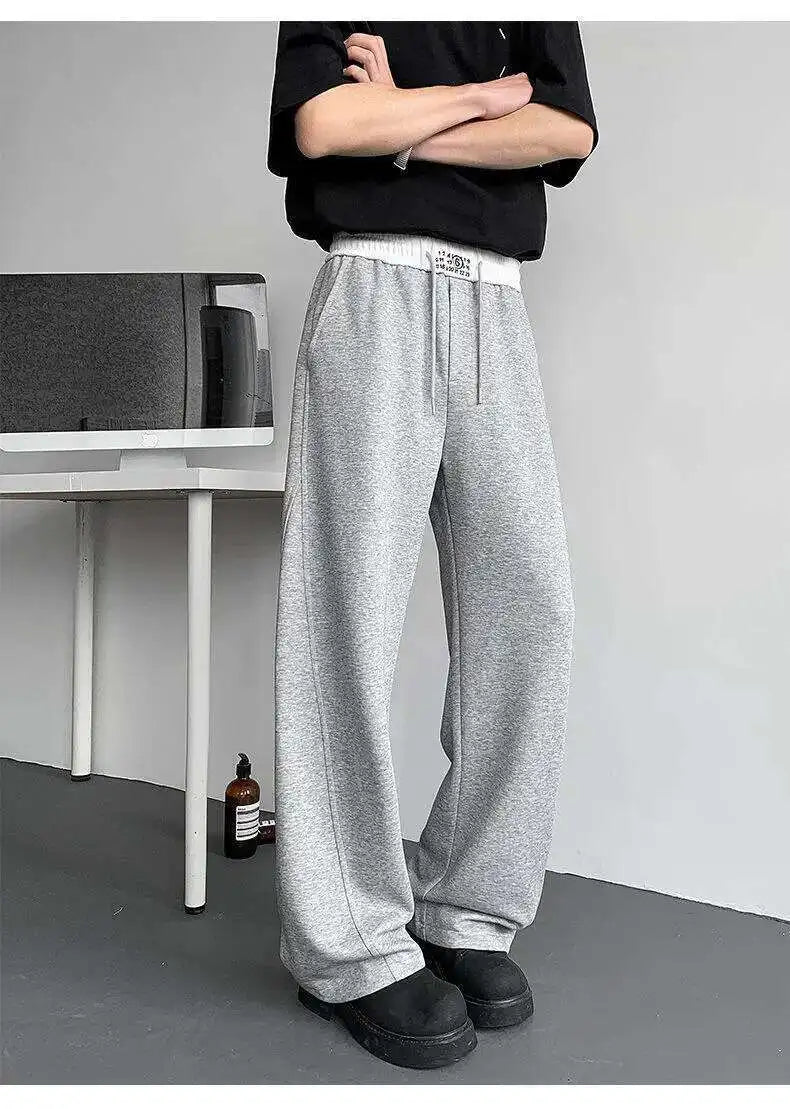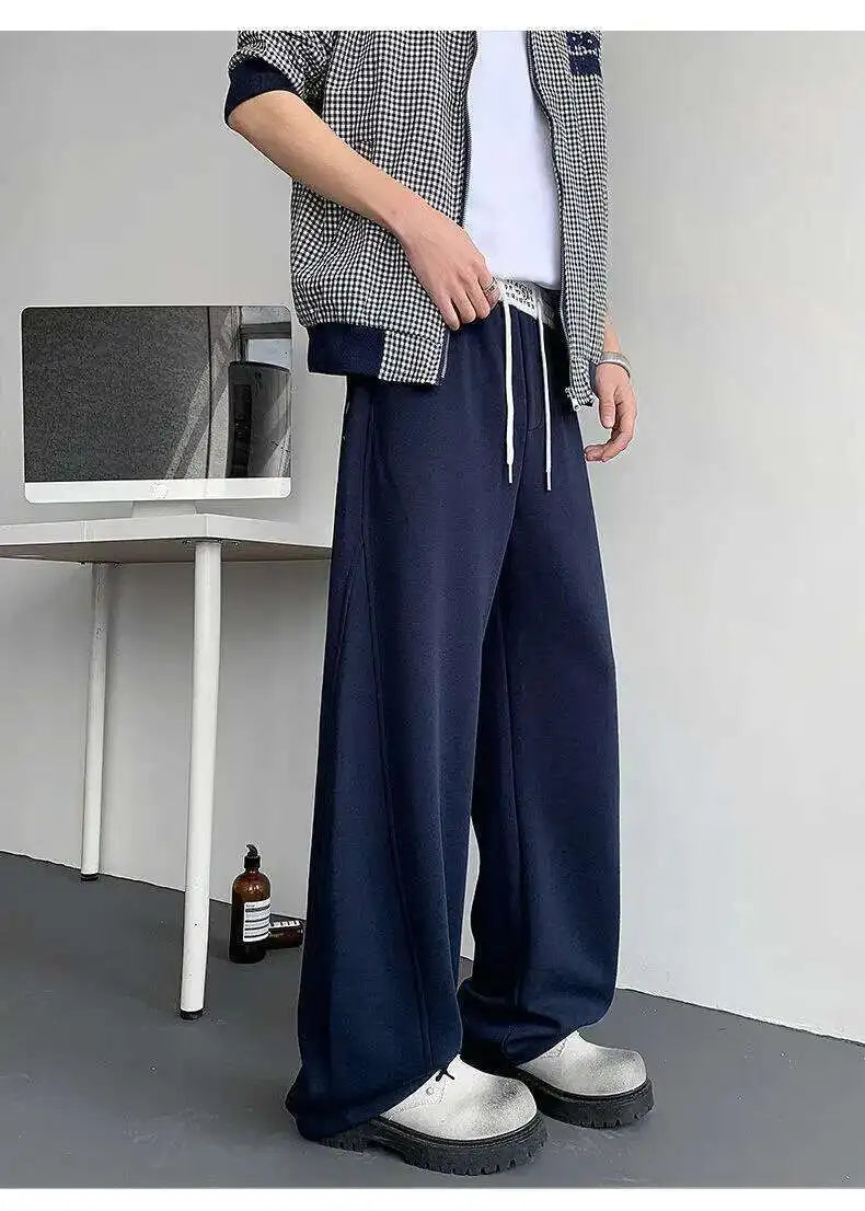 WIAOFELLAS - Trendy Men's Drawstring Design Contrast Color Trousers New Fashion Summer Loose High-waisted Wide Leg Pants Male