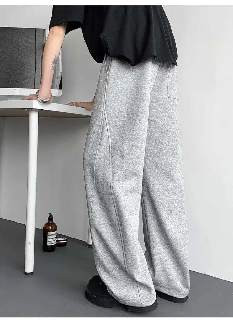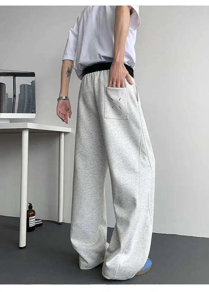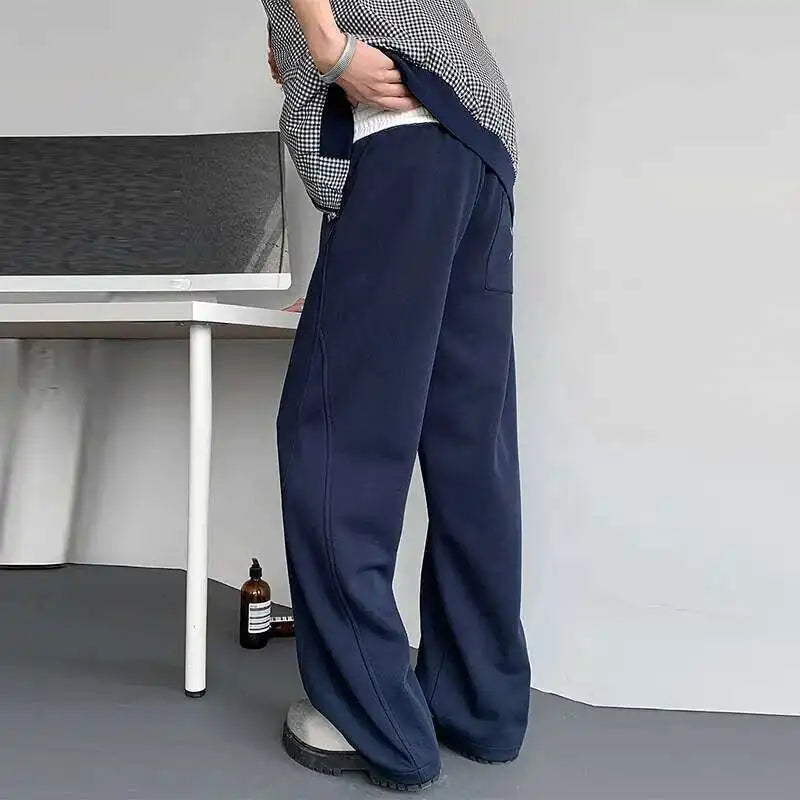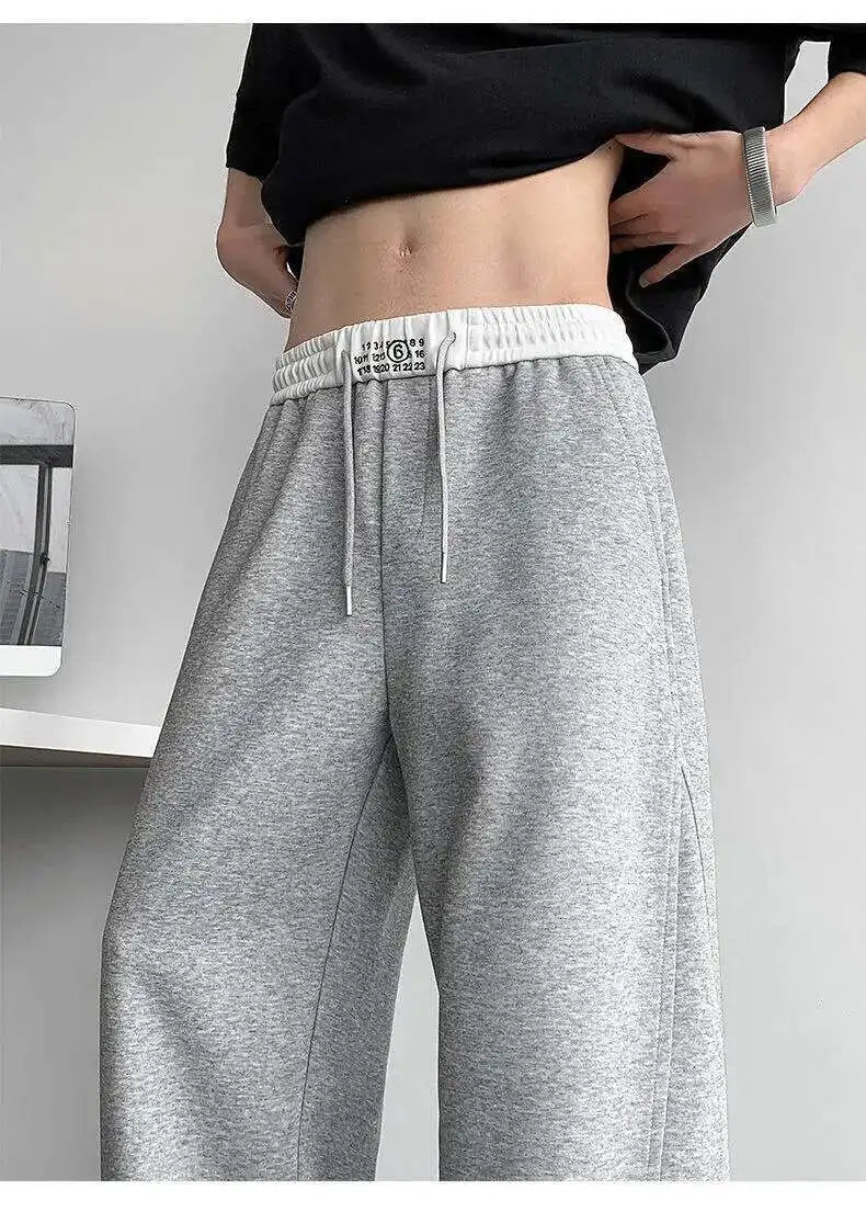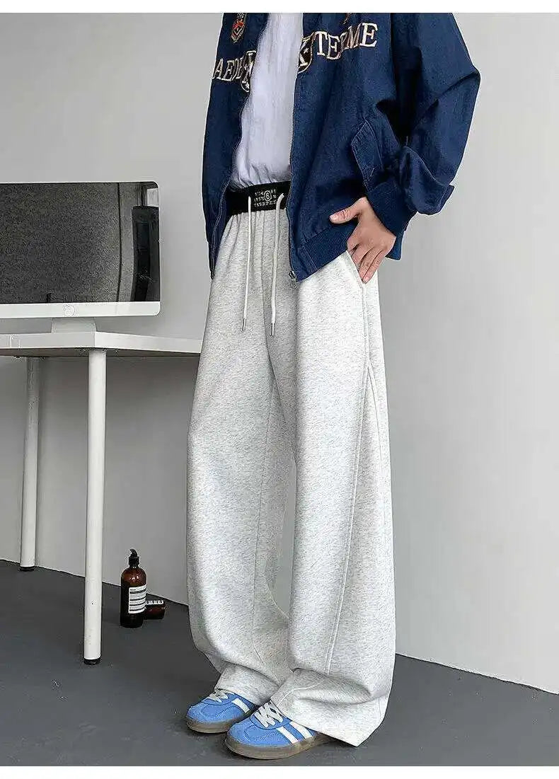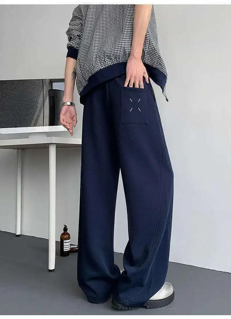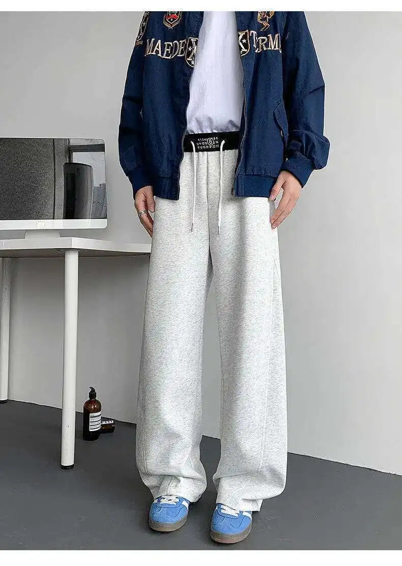 WIAOFELLAS - Trendy Men's Drawstring Design Contrast Color Trousers New Fashion Summer Loose High-waisted Wide Leg Pants Male