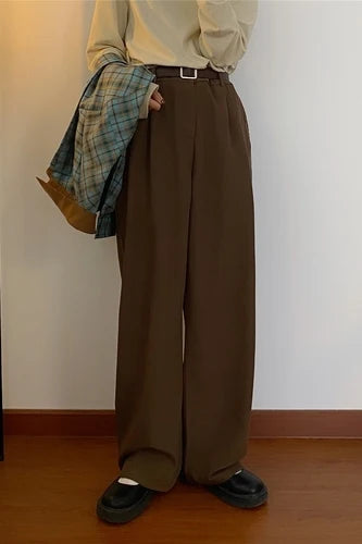 WIAOFELLAS  -  Vintage Pants Men Fashion High Street Unisex Loose Autumn Casual All-match Versatile Straight Simple Elegant Streetwear Newly