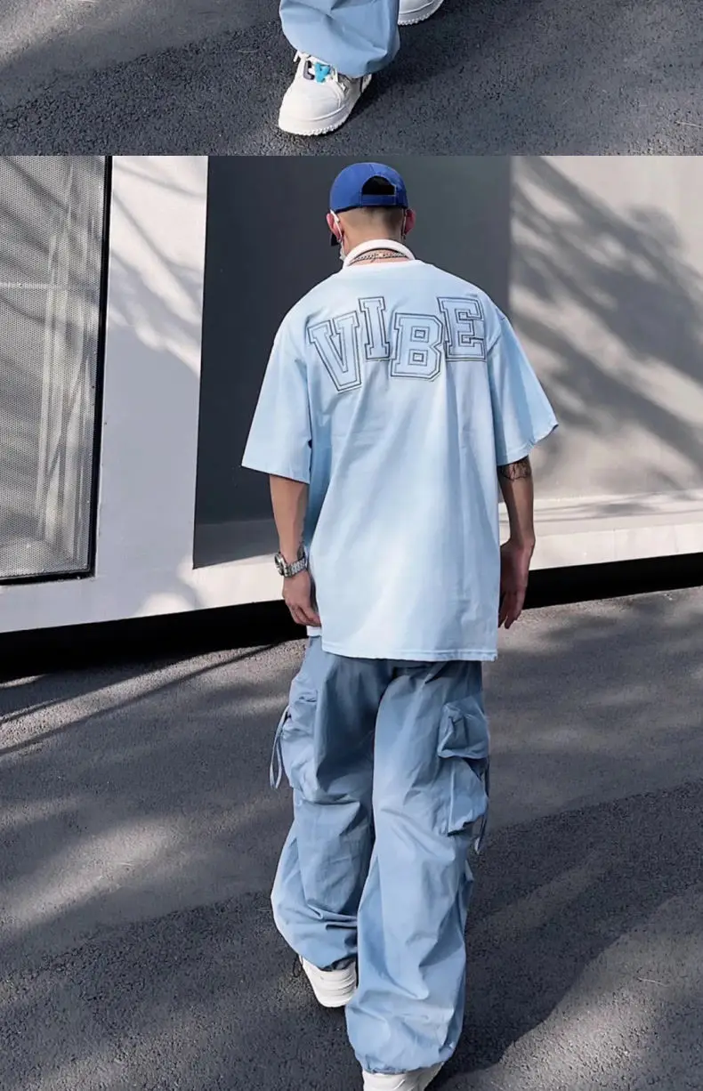 Wiaofellas - Y2K Cargo Pants for Men Hip Hop Harajuku Parachute Cargo Trousers Male Blue Japanese Loose Casual Streetwear Hip Hop
