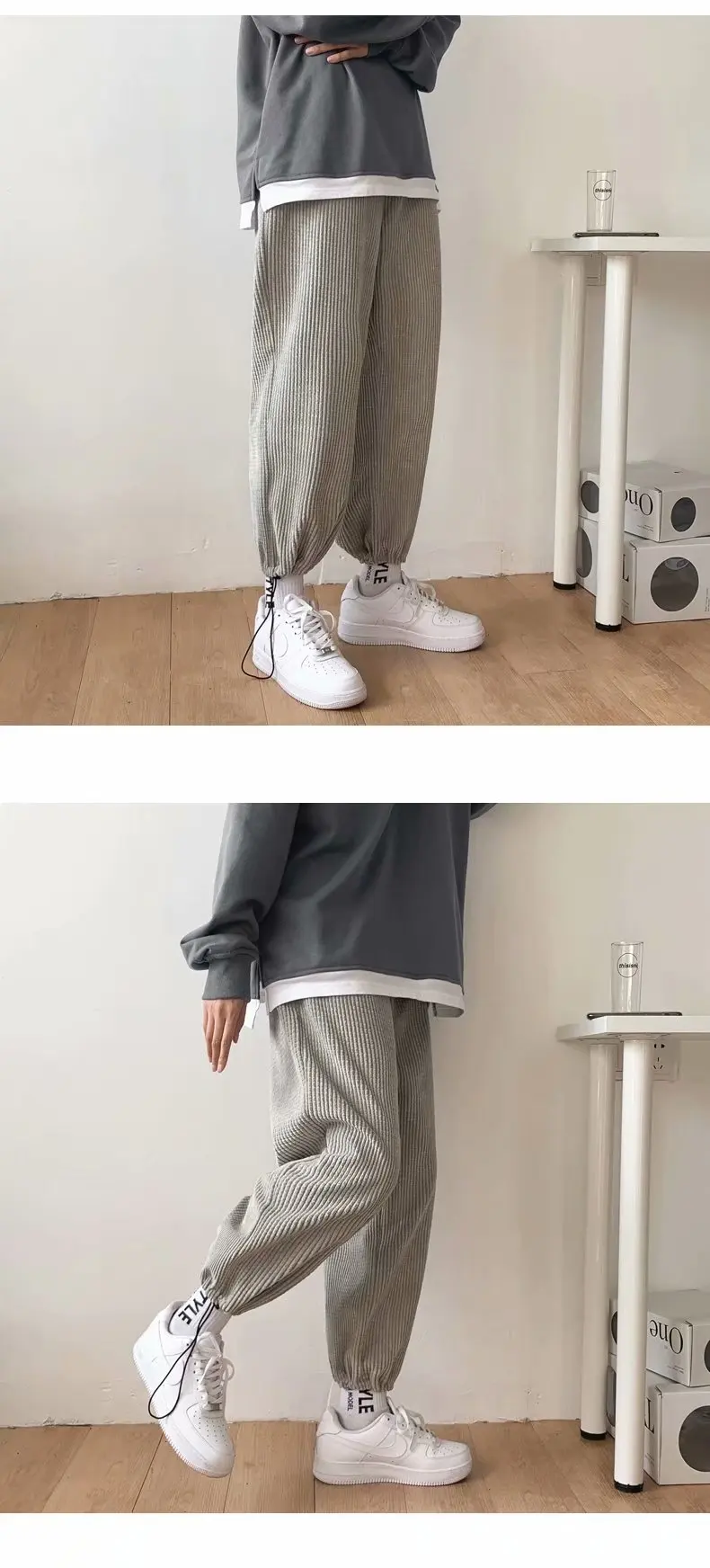 Wiaofellas Wide-leg Pants Men's Fashion Solid Color Retro Drawstring Casual Pants Men Streetwear Loose Hip-hop Straight Trousers Mens M-2XL