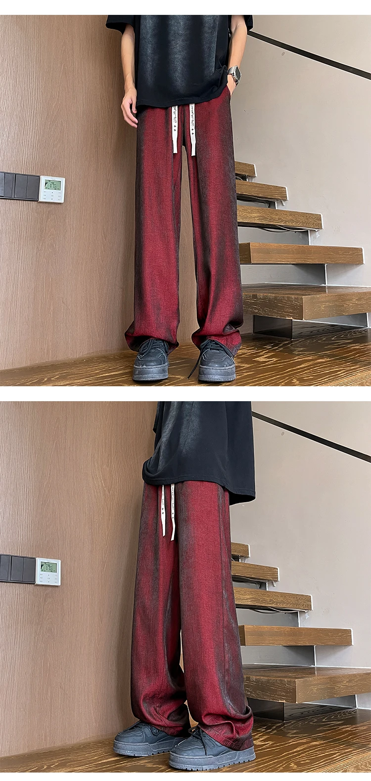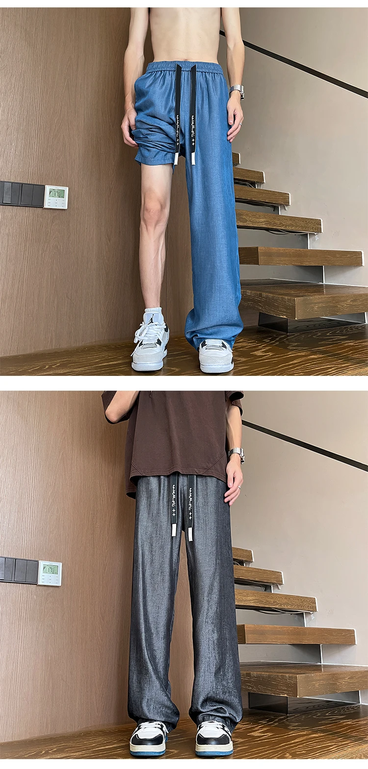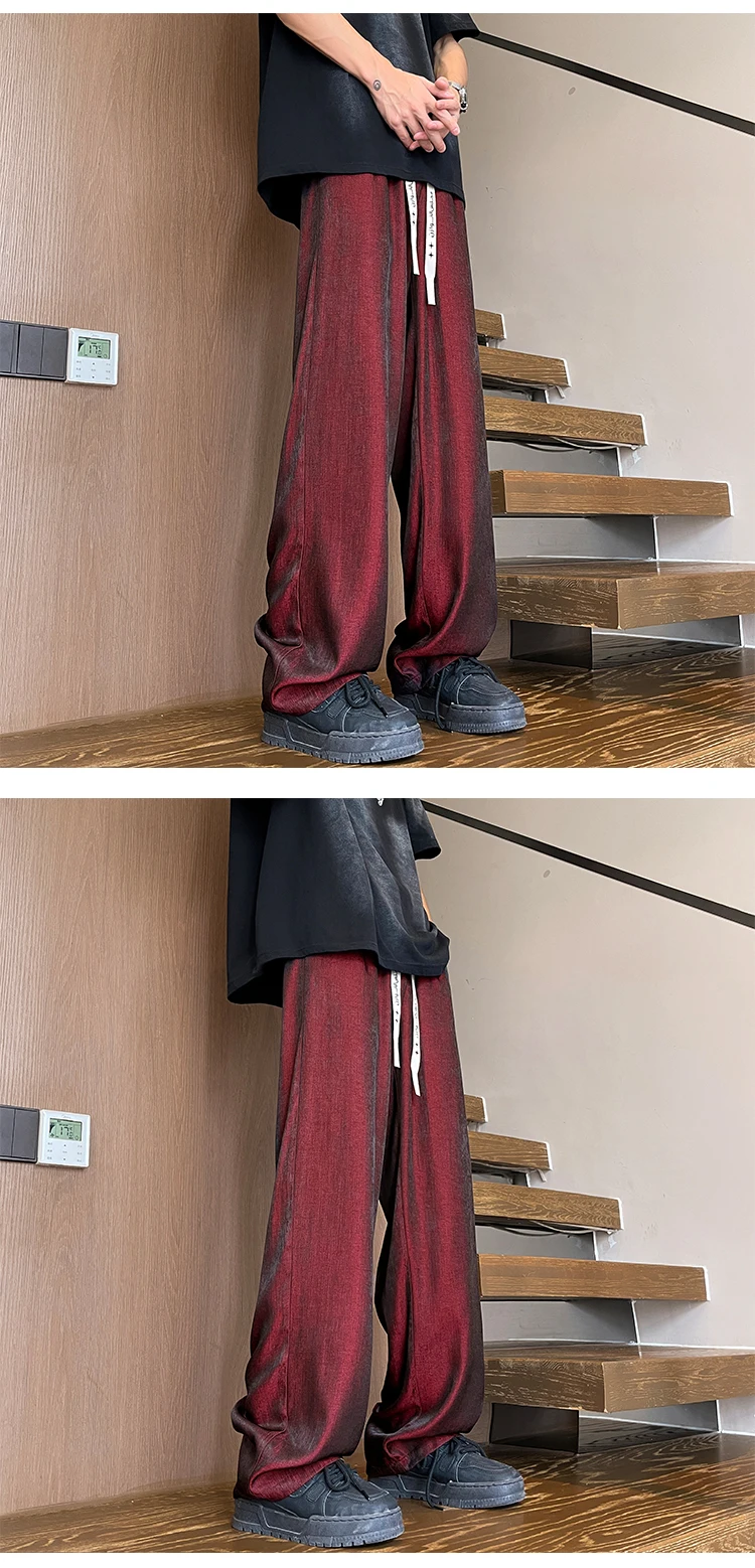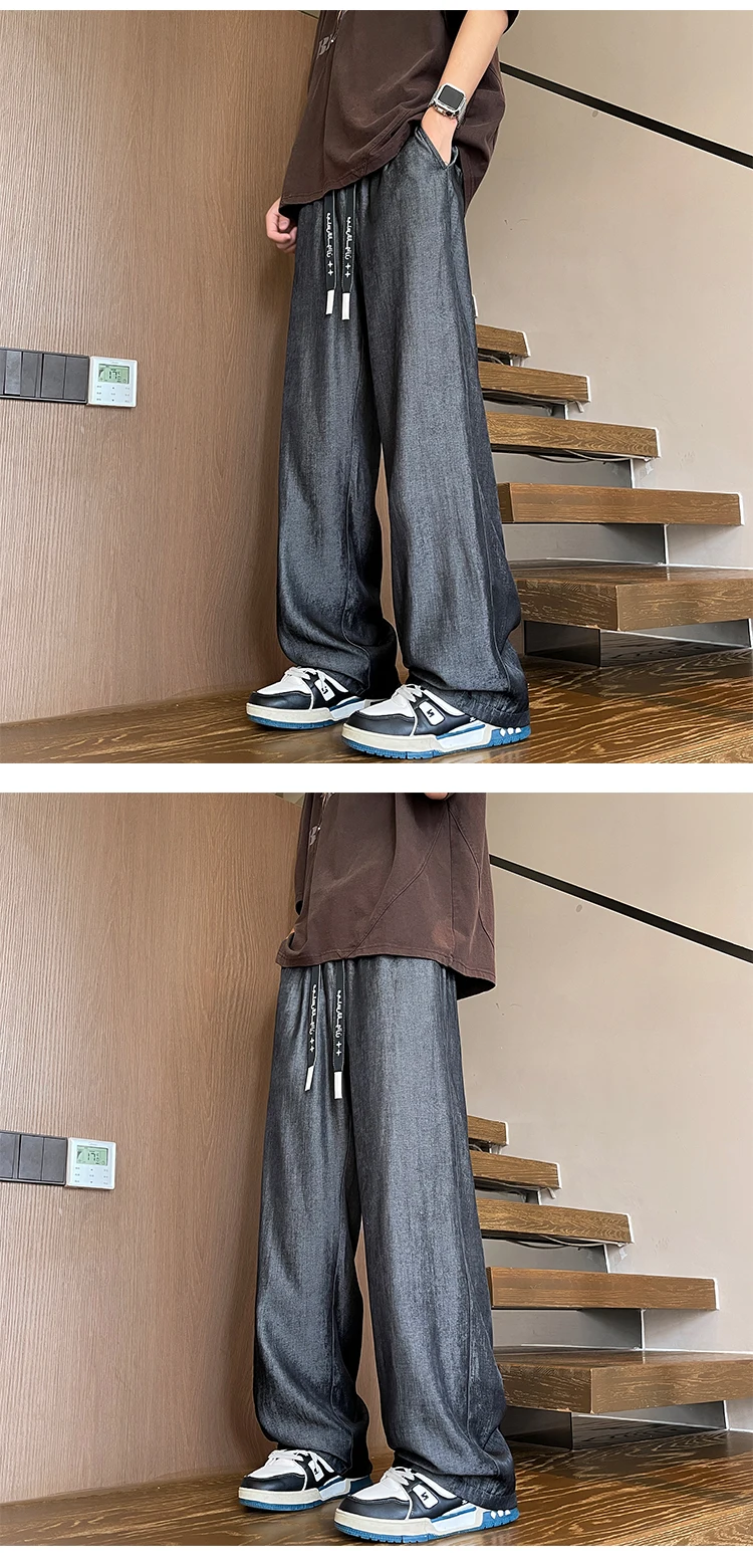 Wiaofellas - Wide Pants Ice Silk Pants Slacks Trousers for Men High Quality Brands Harajuku Man Baggy New Straight Men's Clothing