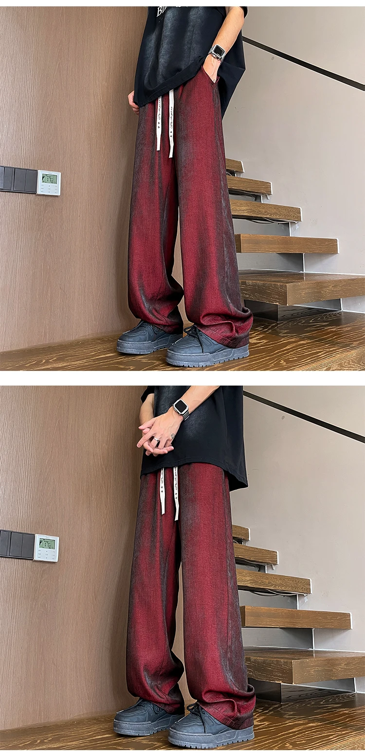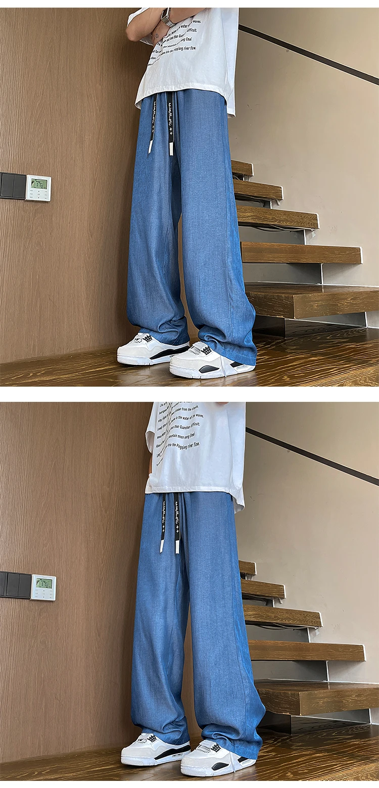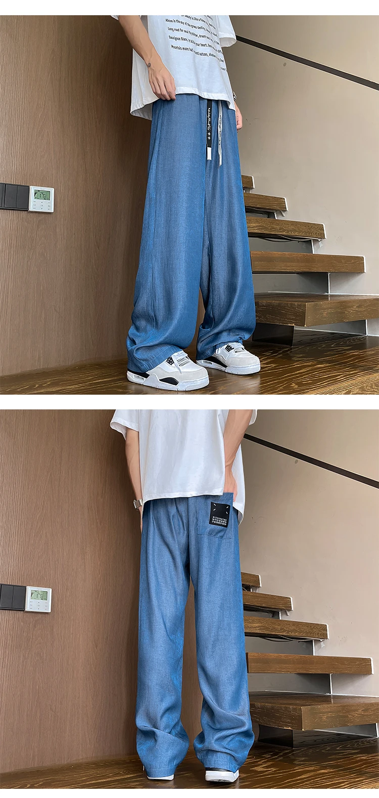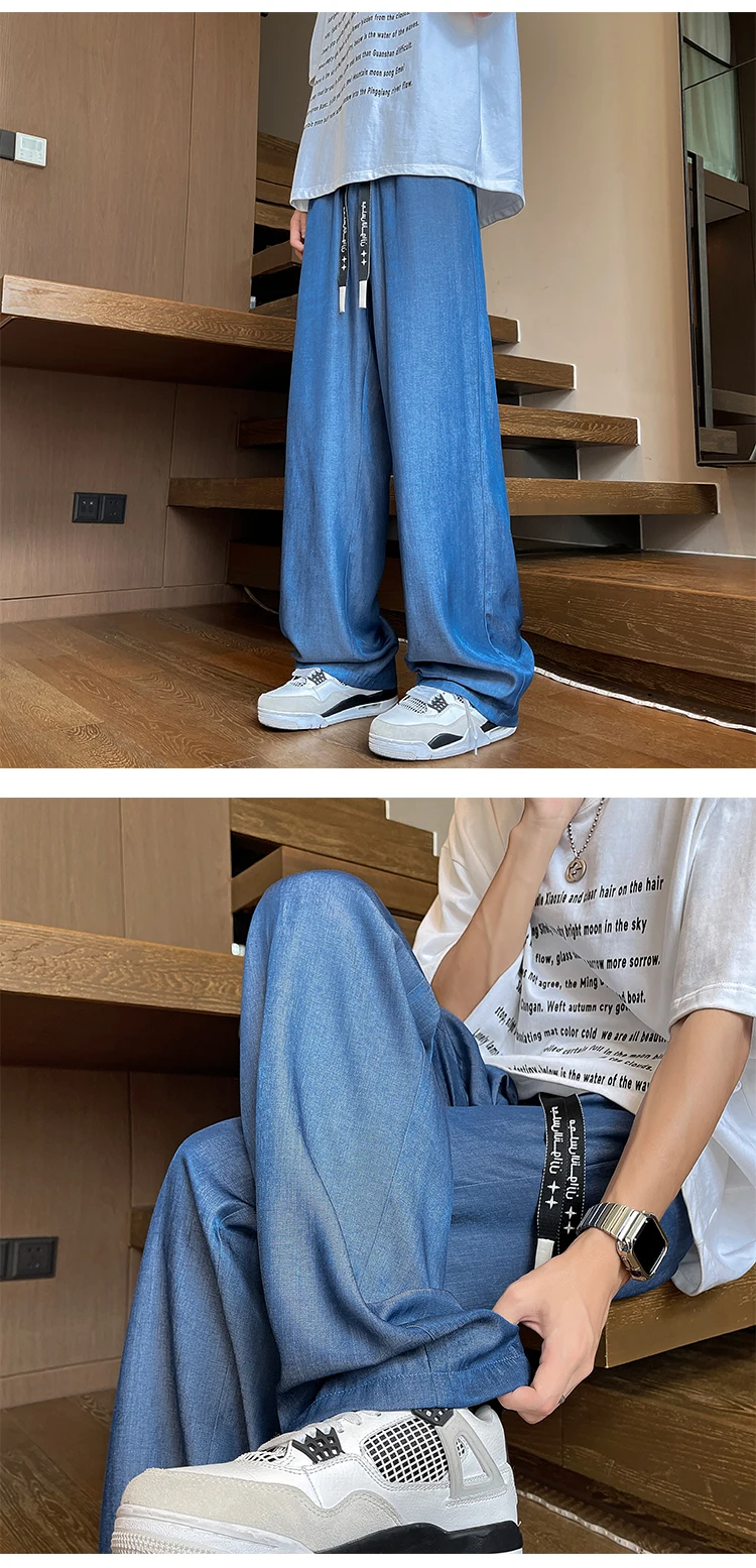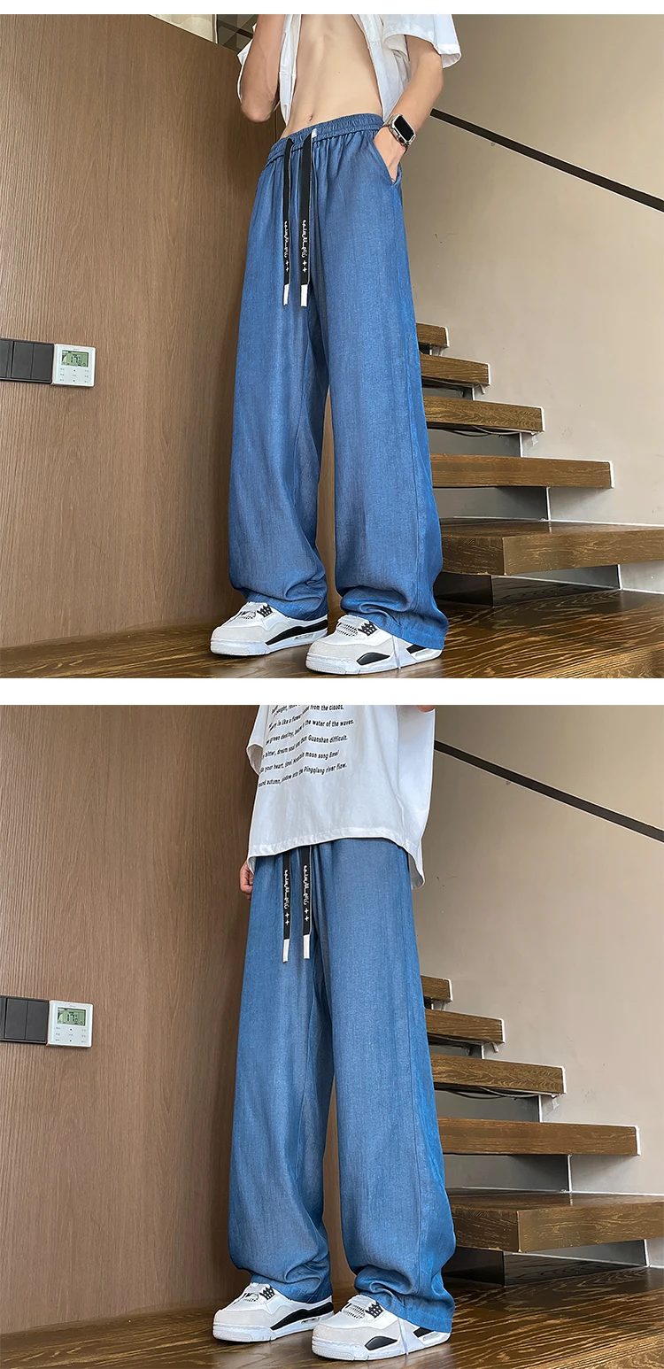 Wiaofellas - Wide Pants Ice Silk Pants Slacks Trousers for Men High Quality Brands Harajuku Man Baggy New Straight Men's Clothing