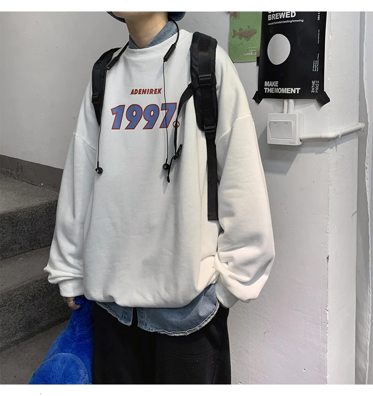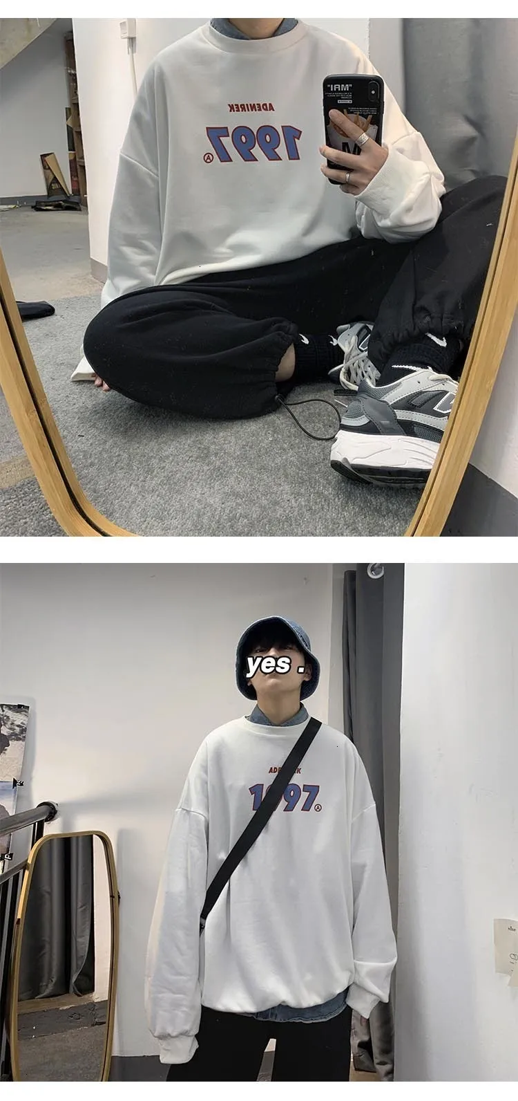 Wiaofellas Autumn Men Casual Sweatshirts Harajuku 1997 Printed Men Oversized Hoodies Korean Man Casual Loose Pullovers