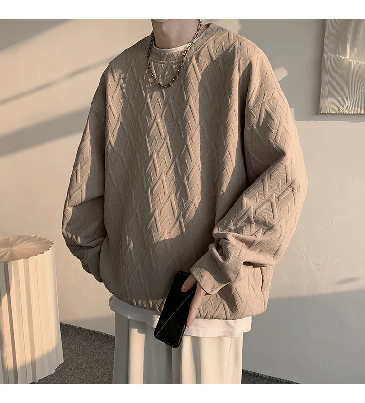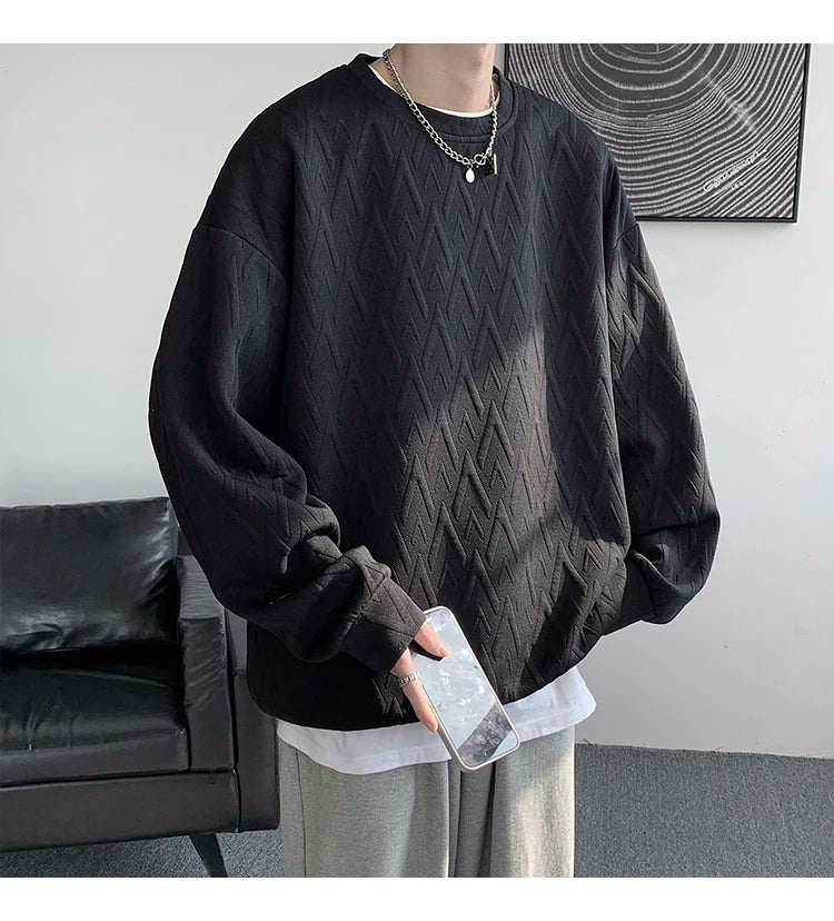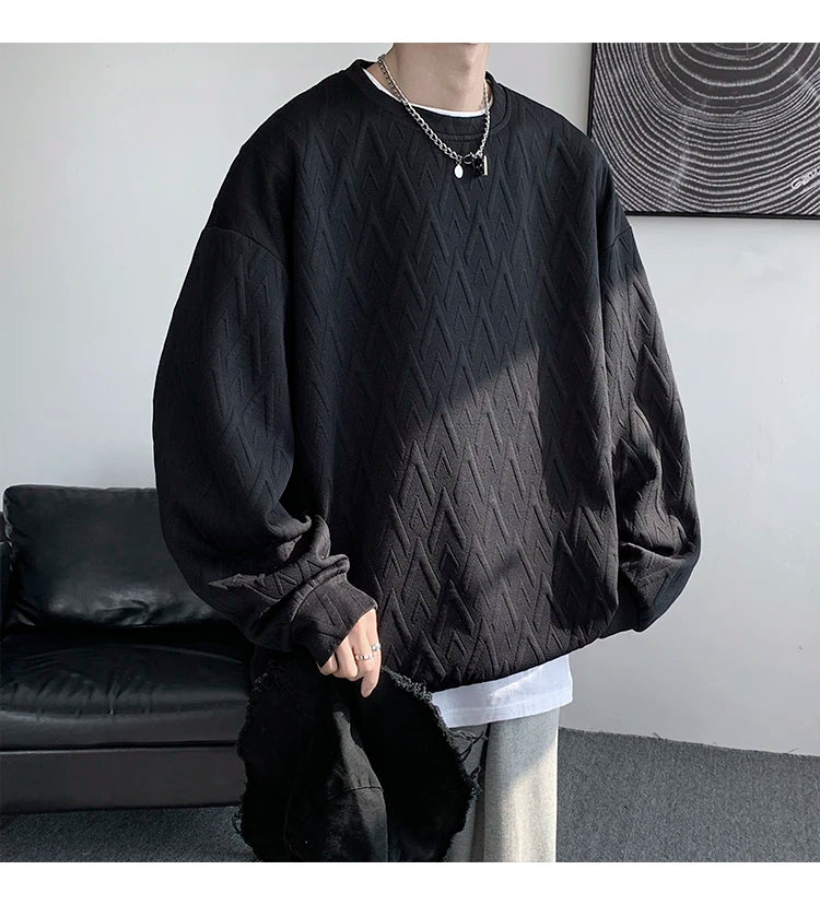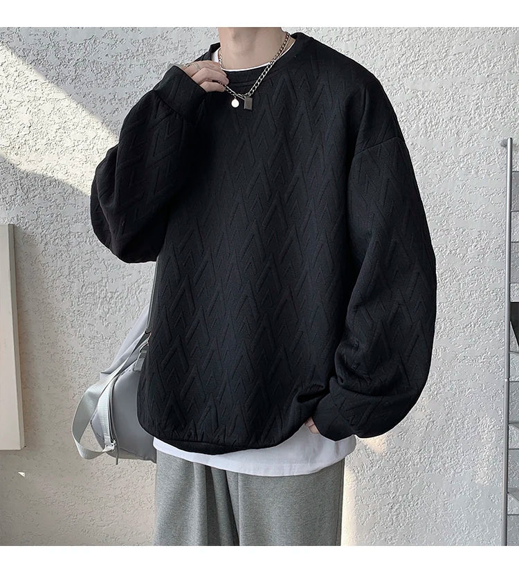 WIAOFELLAS - American Style Men's Crew Neck Sweatshirt Basic Pullover Harajuku Sweatshirt Long Sleeve T-shirt Fashion Men's Clothing 5XL