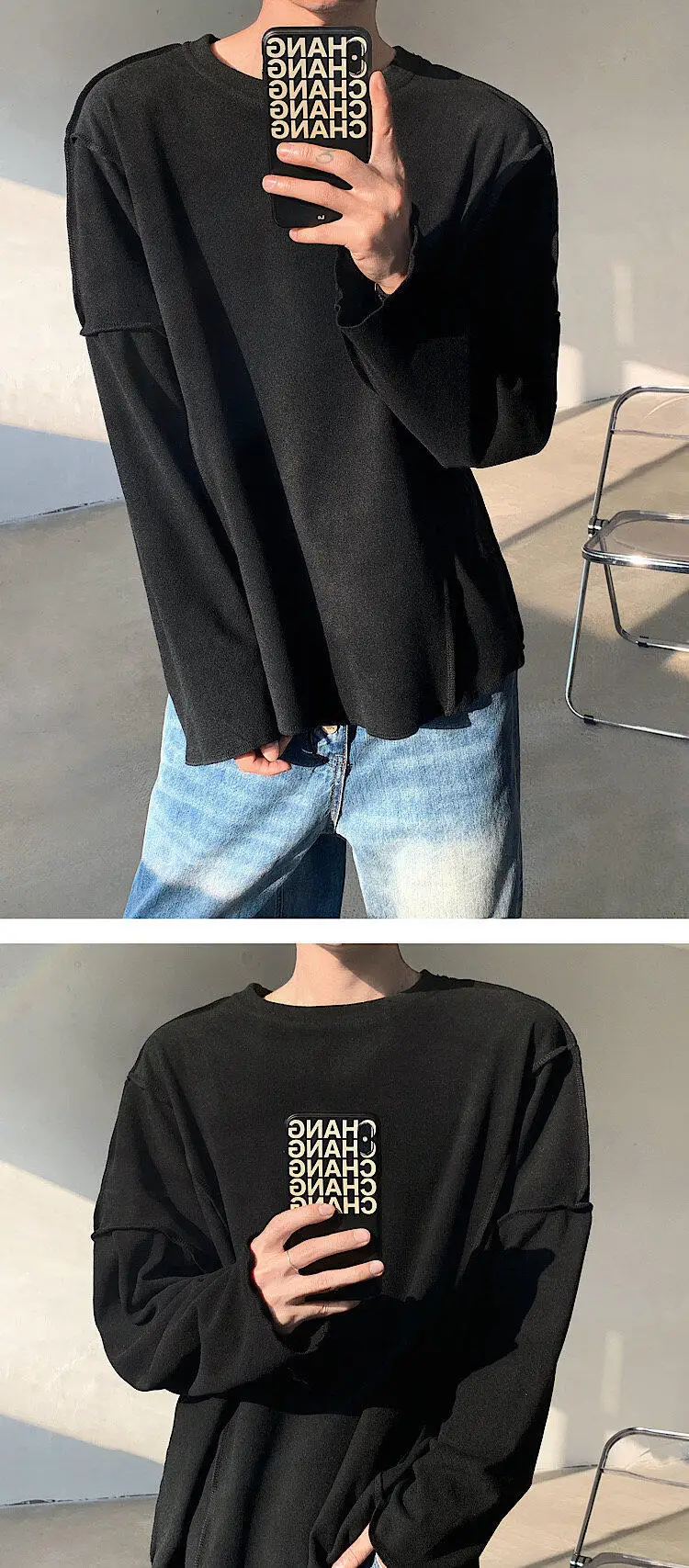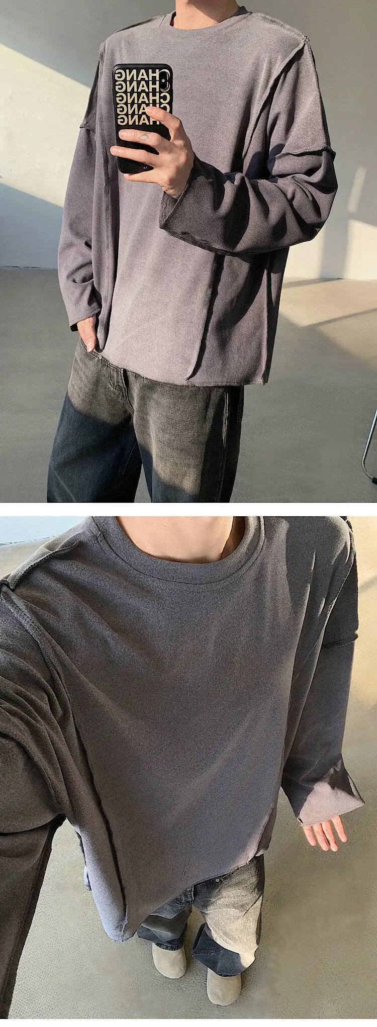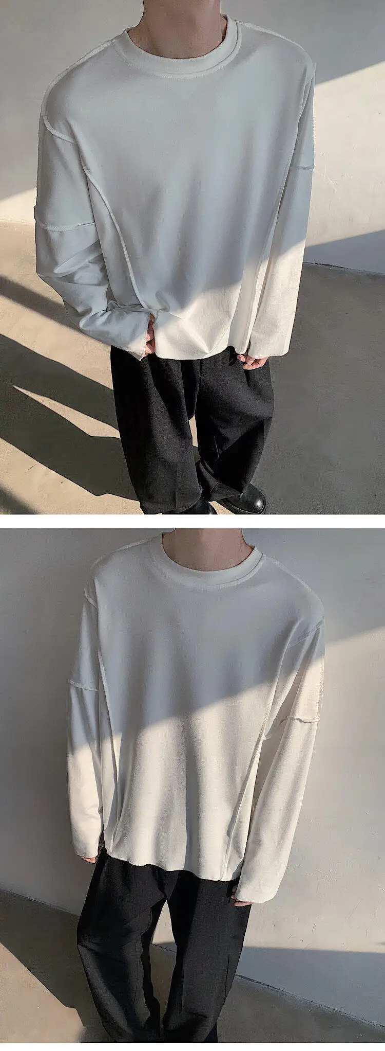 WIAOFELLAS  -  Autumn Long Sleeved T-shirt Men Fashion White Casual Pullover T Shirt Men Streetwear Korean Loose Round Neck T Shirt Mens Top