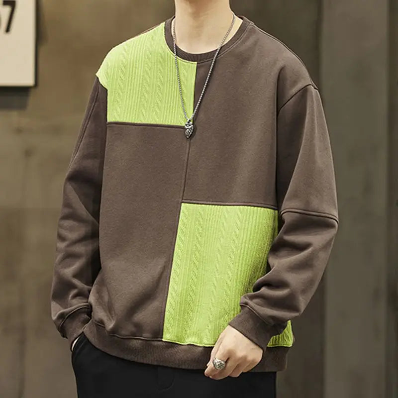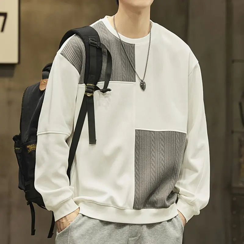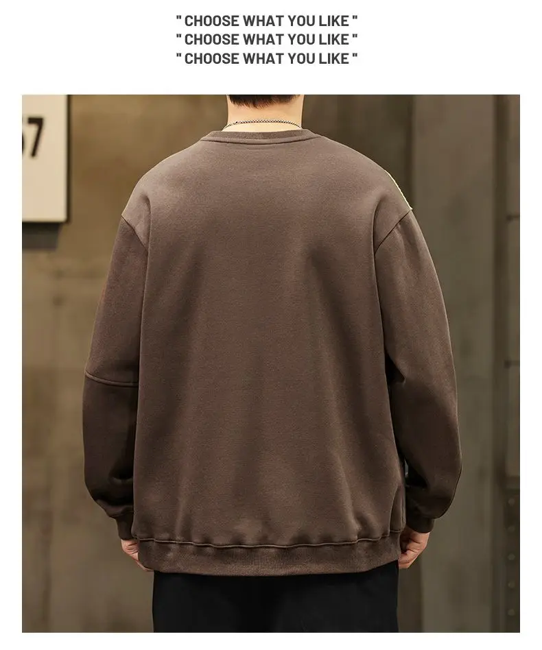 WIAOFELLAS - Autumn New Men's Sweatshirt Pullover Without Hat American Retro High Street Top Trendy Loose Round Neck Top