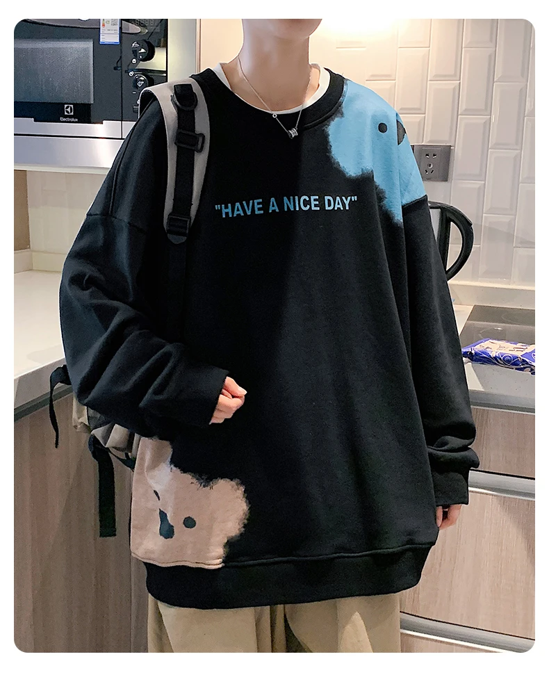 Wiaofellas Autumn New Trend Oversize Pullovers Male Cartoon Bear Print Sweatshirt Men Japan Harajuku Loose Tops Casual HipHop Streetwear