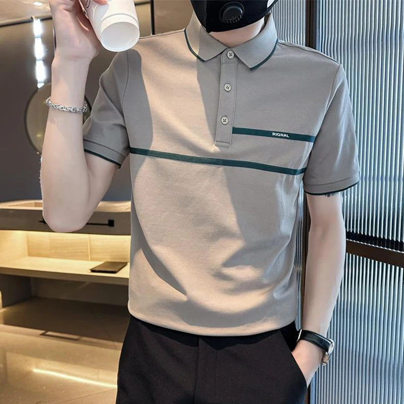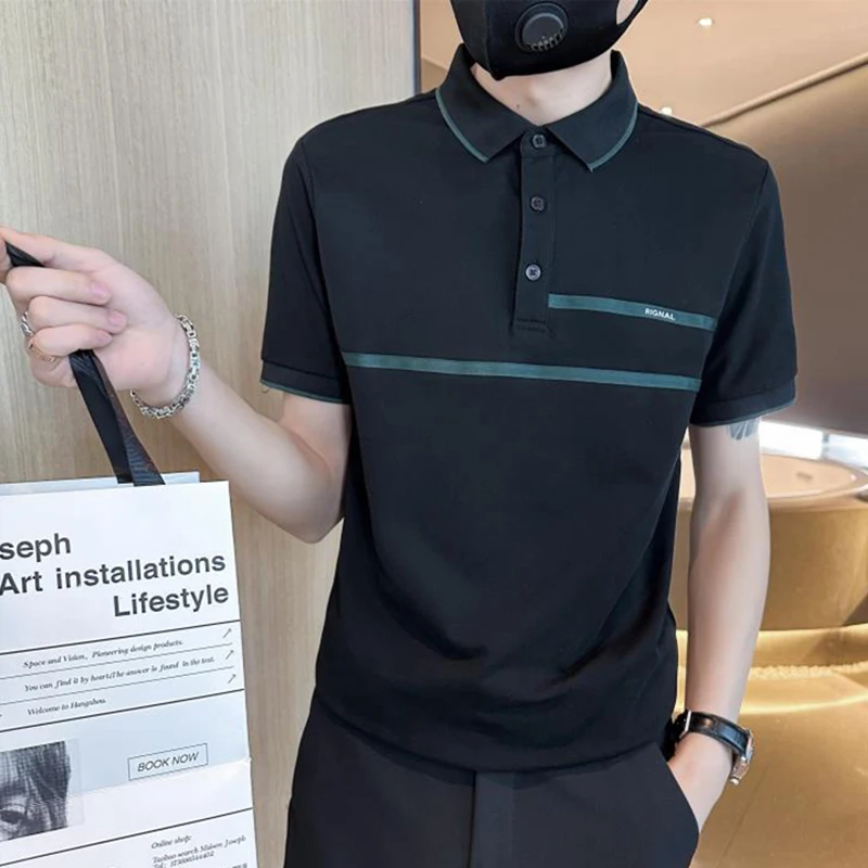 Wiaofellas - Fashion Lapel Button Spliced Loose Business Polo Shirts Men's Clothing Summer New Casual Pullovers Asymmetrical Tee Shirt