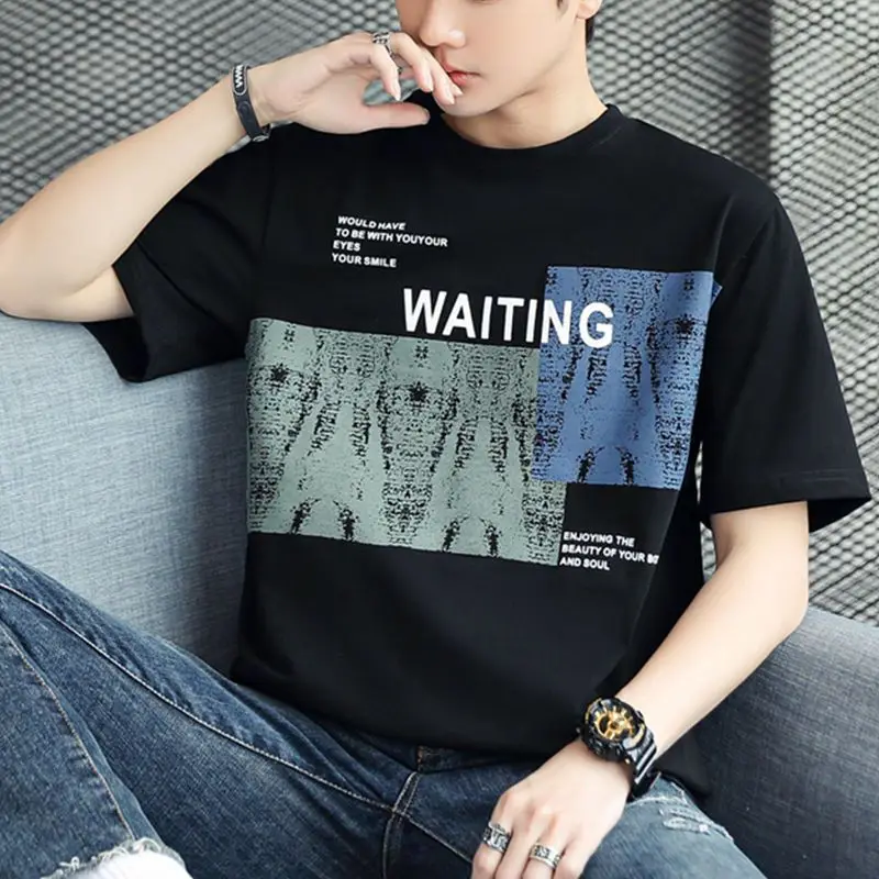 Wiaofellas - Fashion Printed O-Neck Short Sleeve All-match T-Shirt Men's Clothing Spring New Oversized Casual Pullovers Korean Tee Shirt