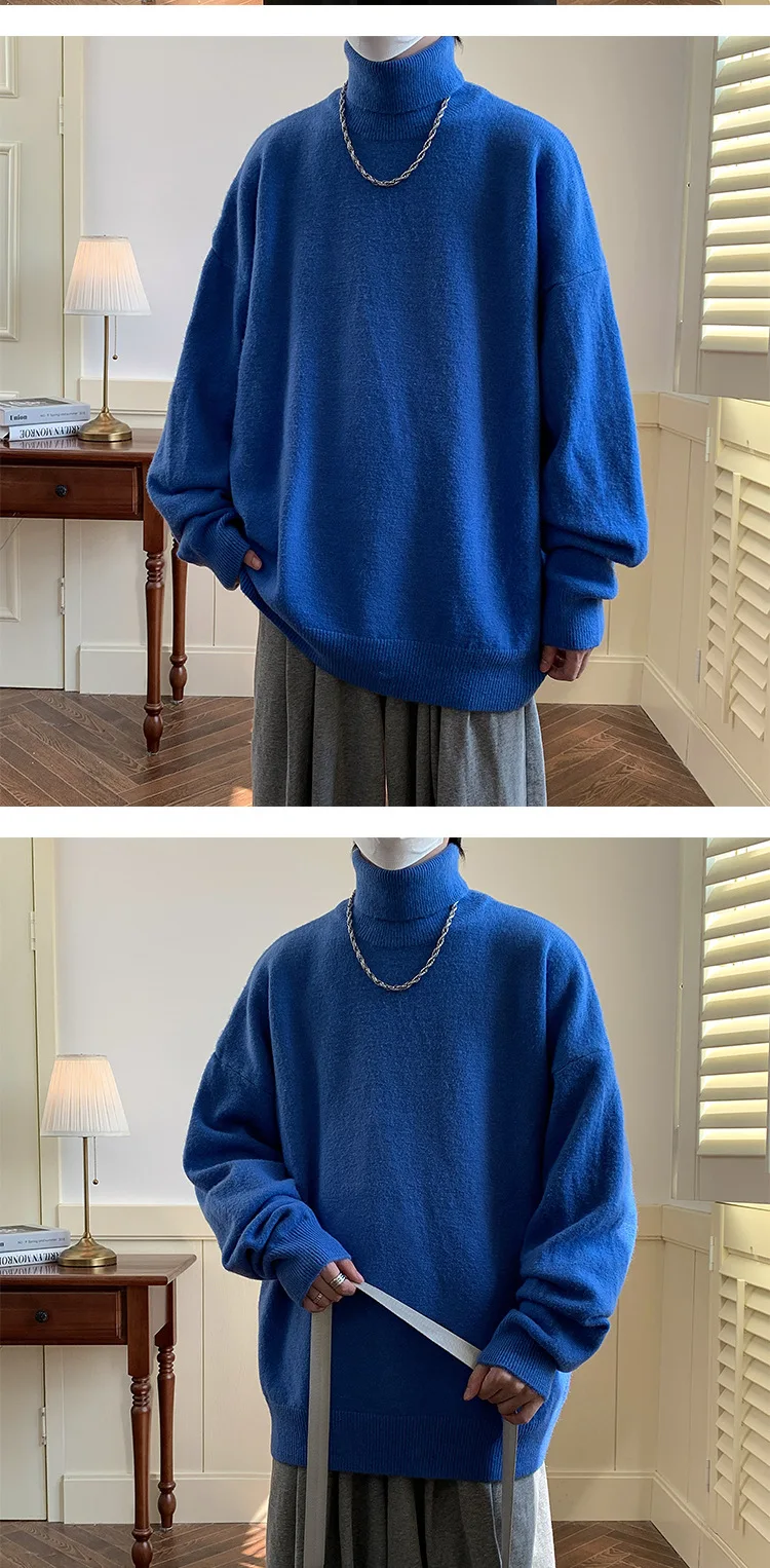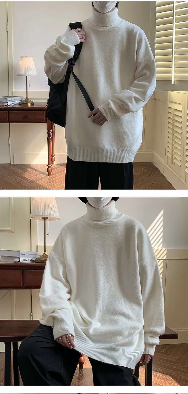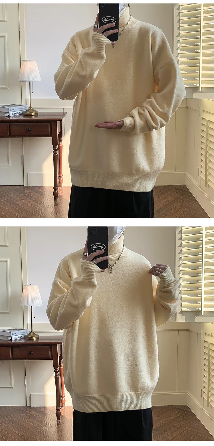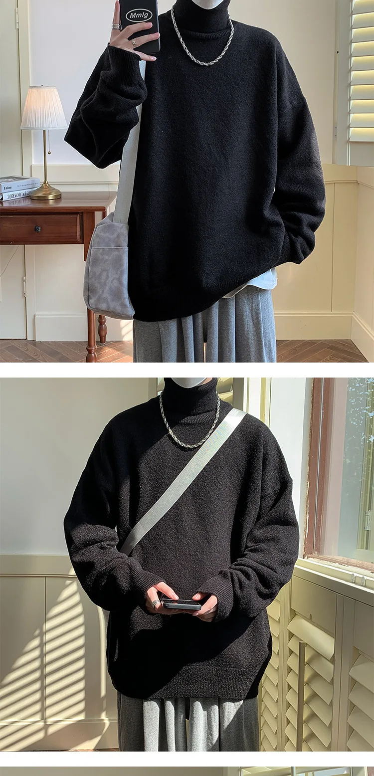 Wiaofellas - Knitted Warm Sweater Men Turtleneck Sweater Men's Loose Casual Pullovers Bottoming Shirt Autumn Winter New Solid Color Pullovers
