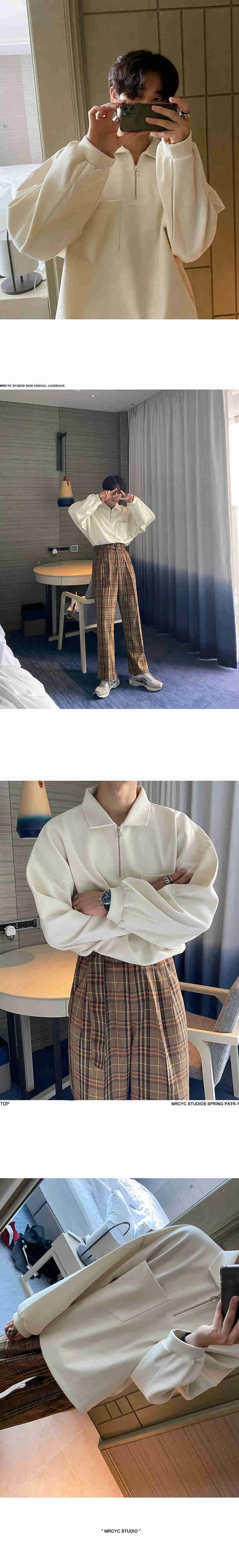 WIAOFELLAS - Lapel Men's Oversized Sweatshirt Long Sleeve Loose Single Pockets Design Pullover Tops Korean Chic Clothing Thick 2D1250