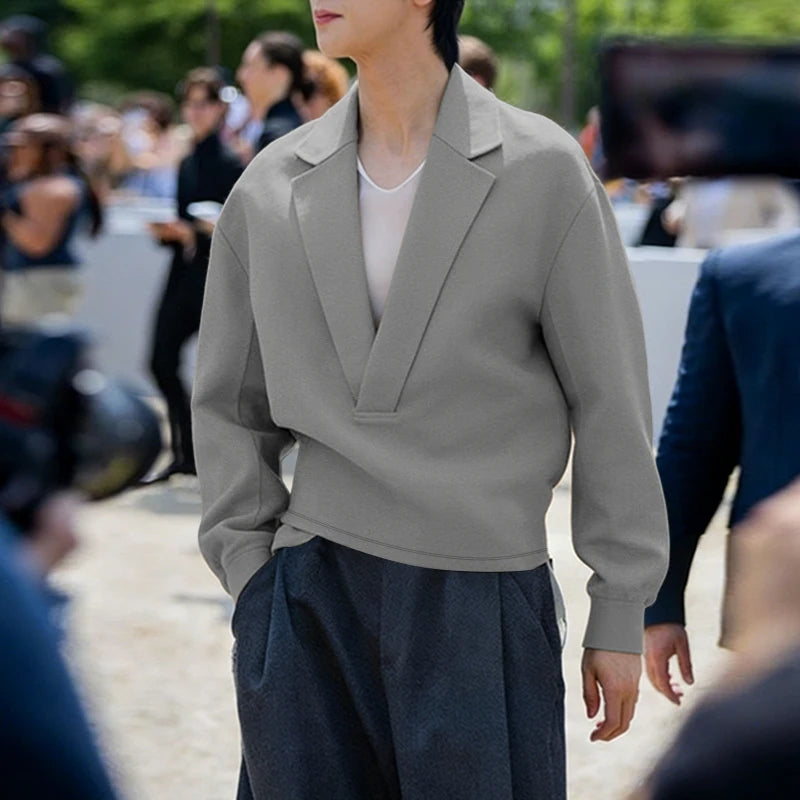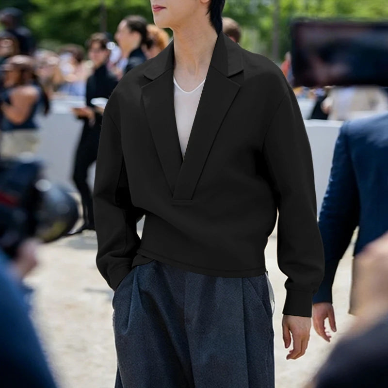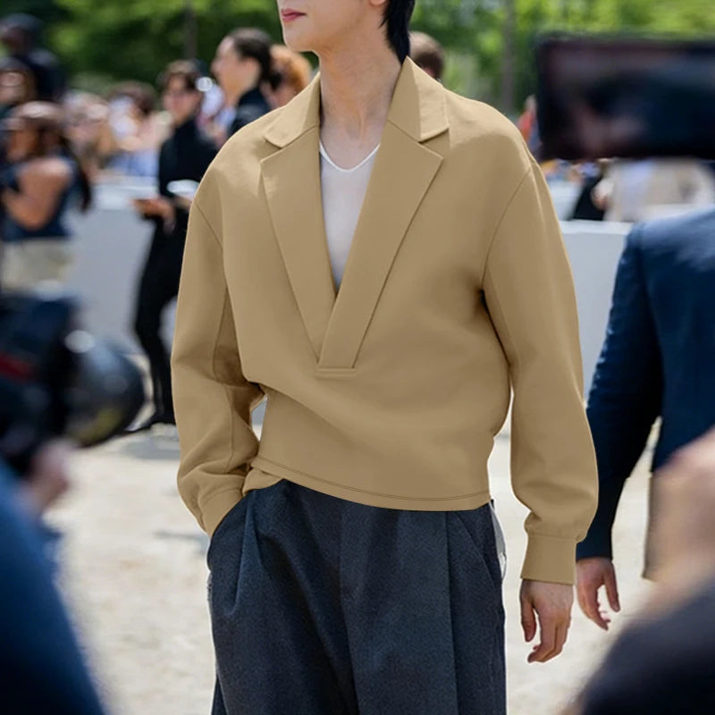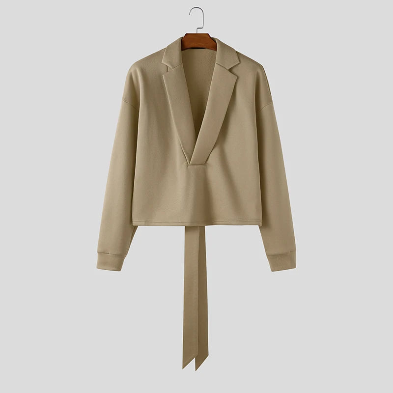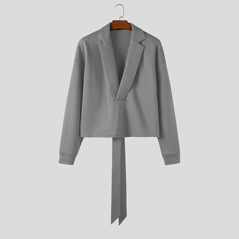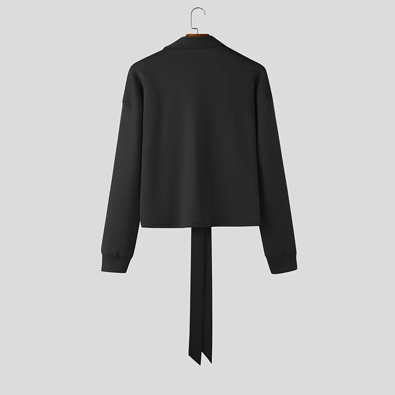 WIAOFELLAS - Men Hoodies Solid Color Lapel Long Sleeve Casual Male Sweatshirts Streetwear Loose Fashion Leisure Men Pullovers S-5XL