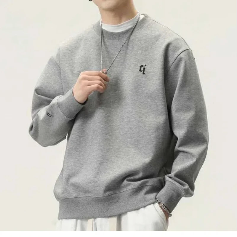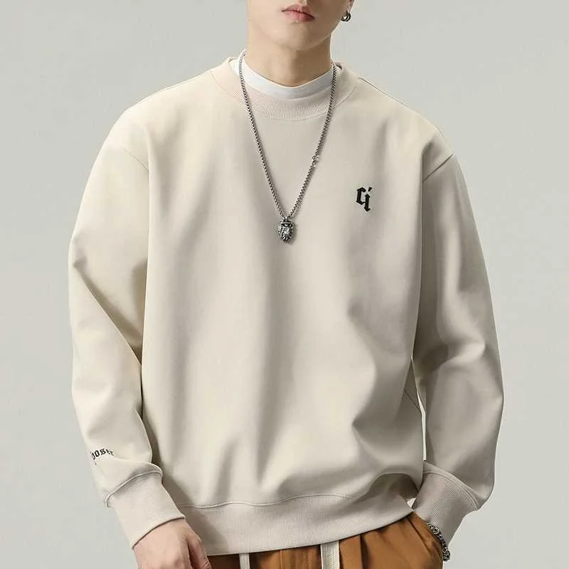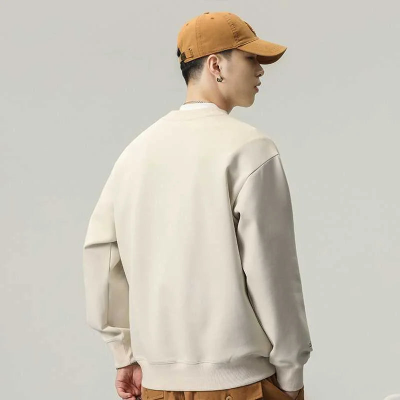 WIAOFELLAS - Spring and Autumn Men's 2024 New Splicing Pullovers O-Neck Letter Fashion Solid Color Loose Casual Long Sleeve Sweatshirts