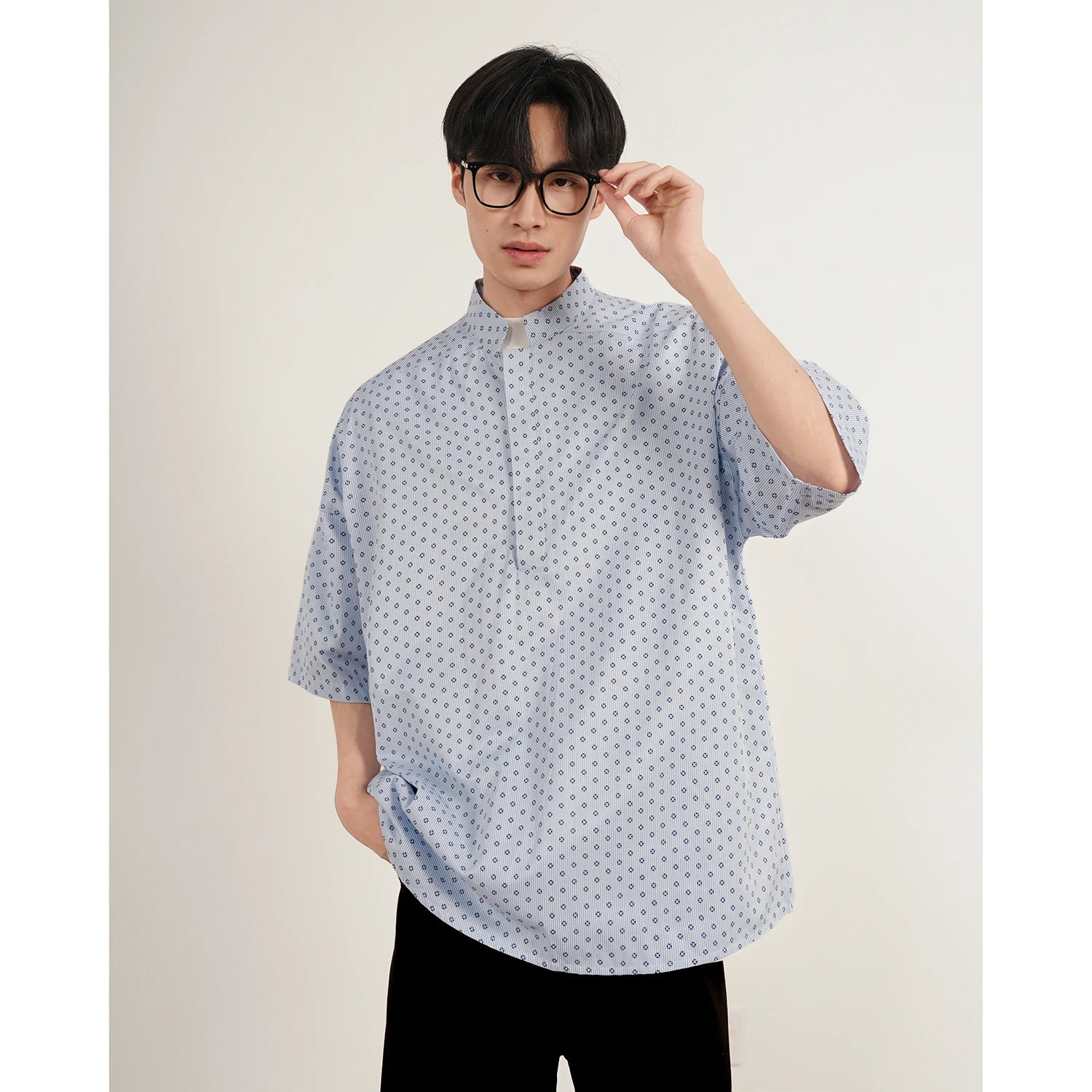 WIAOFELLAS - Summer Men's Oversized Short-Sleeve Shirt – Loose Fit Casual Tee, Light Blue/Deep Blue (M-5XL) Young Pullover