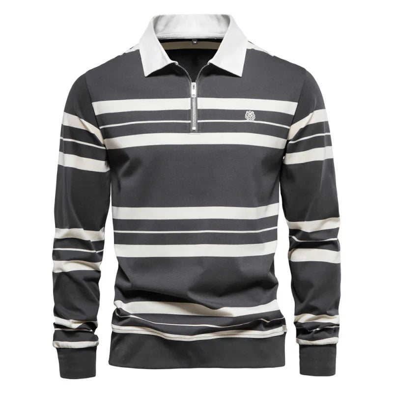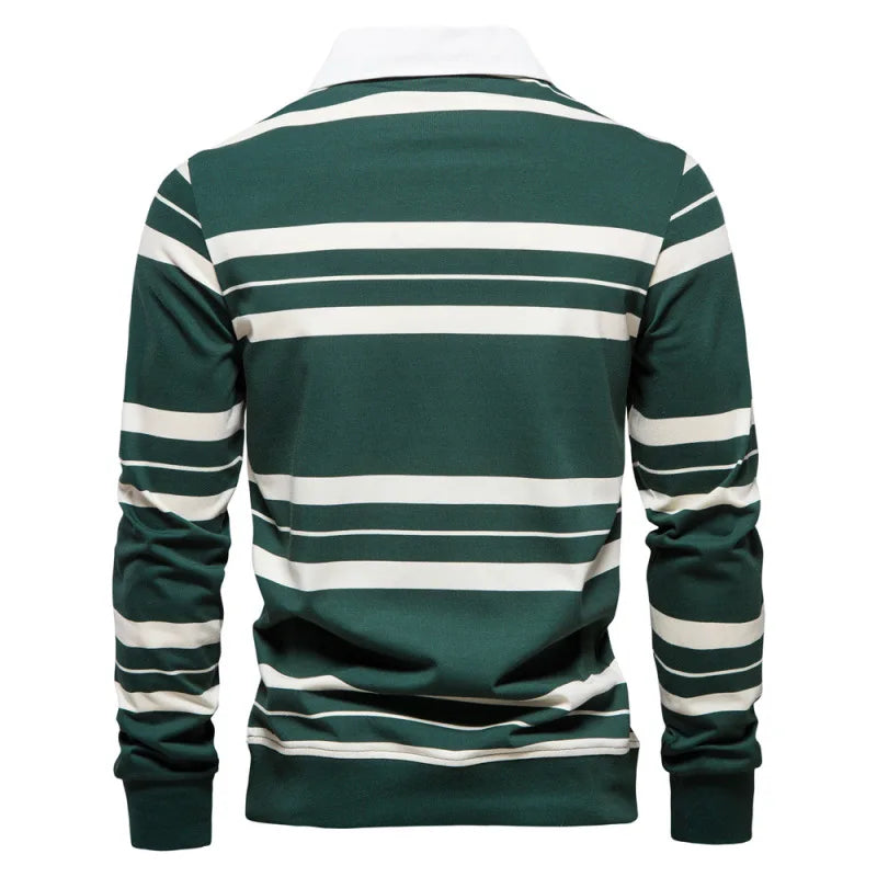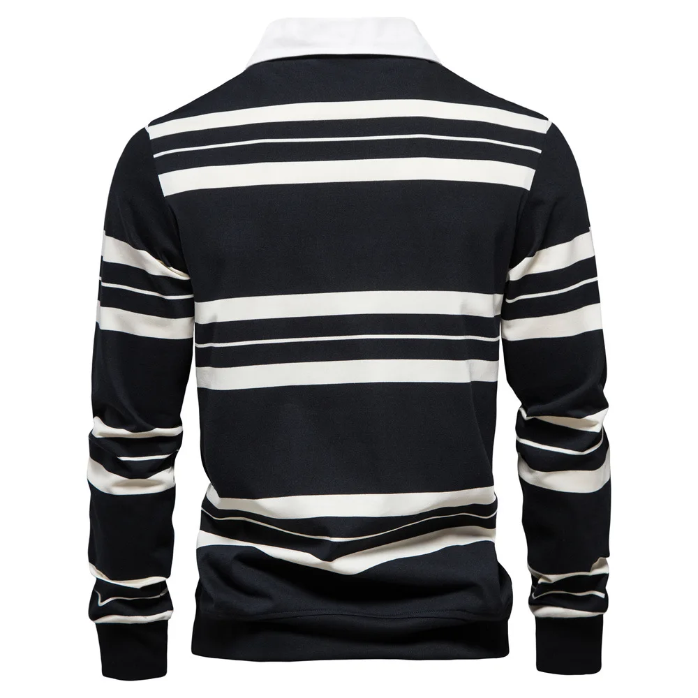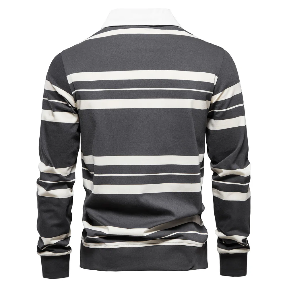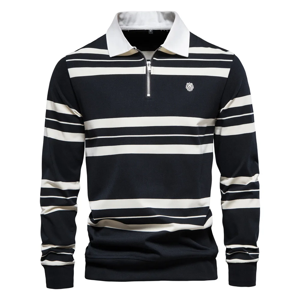 2023 Autumn New Polo Collar Stripe Men's Fashion Casual Long Sleeved T-shirt