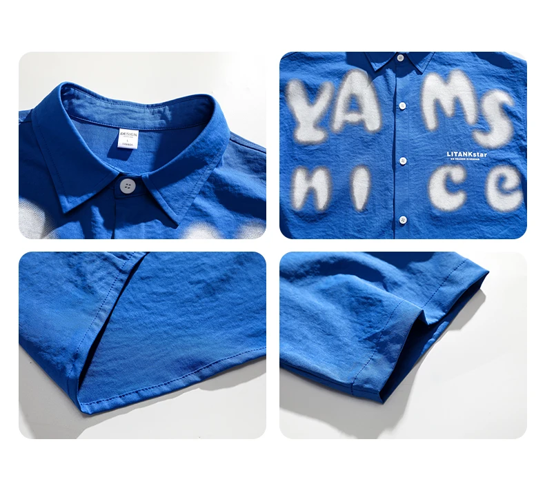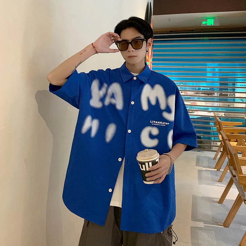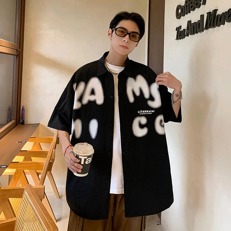 Wiaofellas - Summer Fashion Letter Print Men Shirt Casual Short Sleeve Trend Oversized Korean Streetwear Shirts Retro Loose Y2k T Shirt