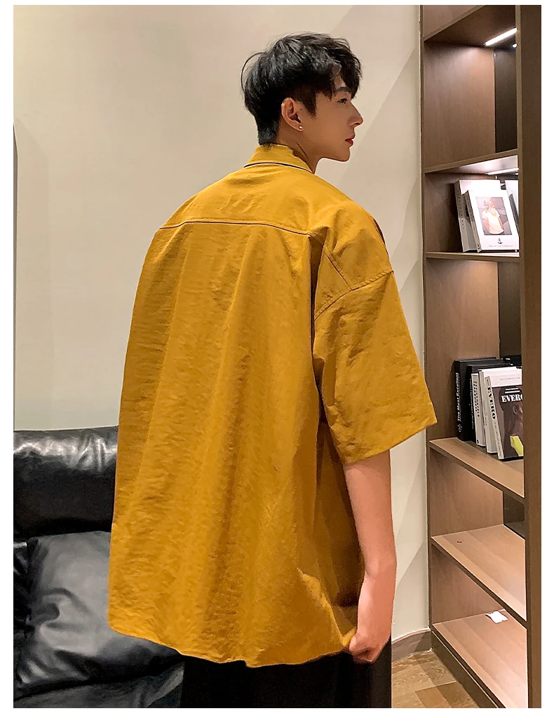 Wiaofellas - American Retro Patchwork Short Sleeved Shirt Men and Women Summer Casual Couple All-match Loose Tie Half Sleeved Y2k Tops Shirts