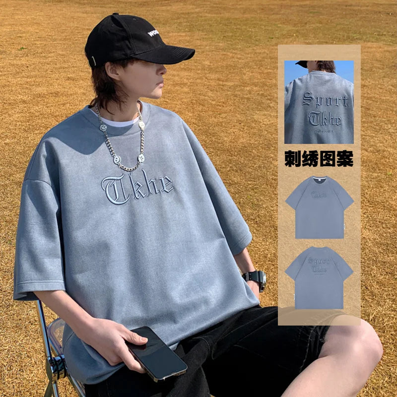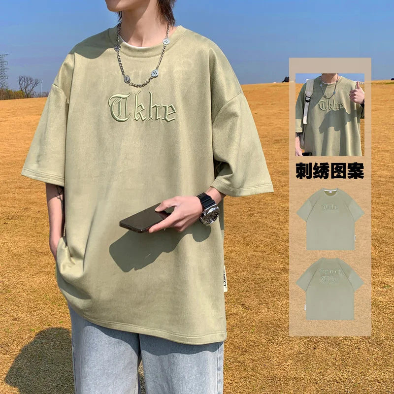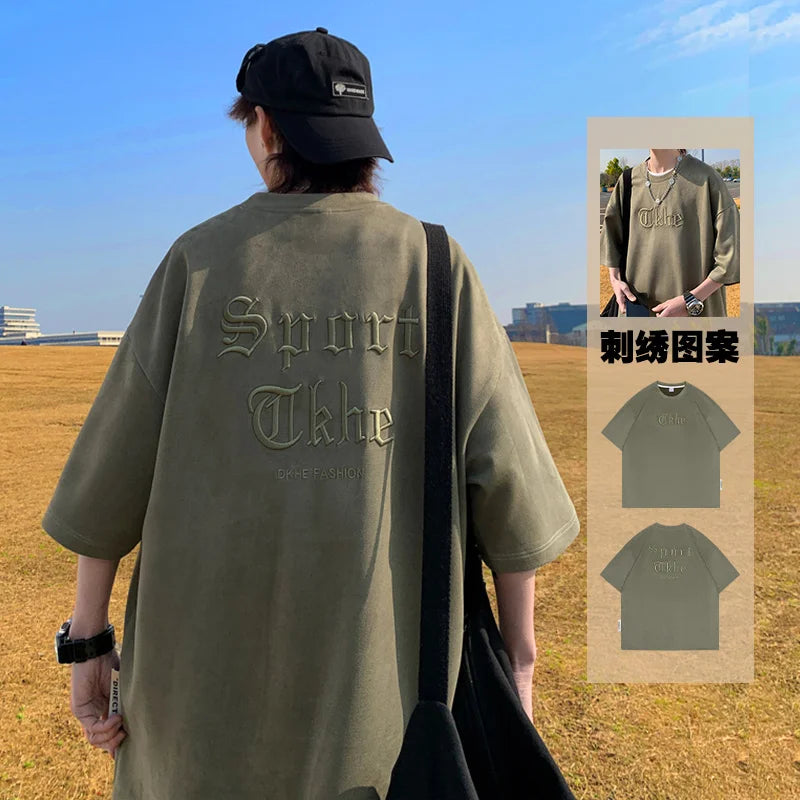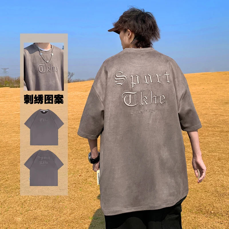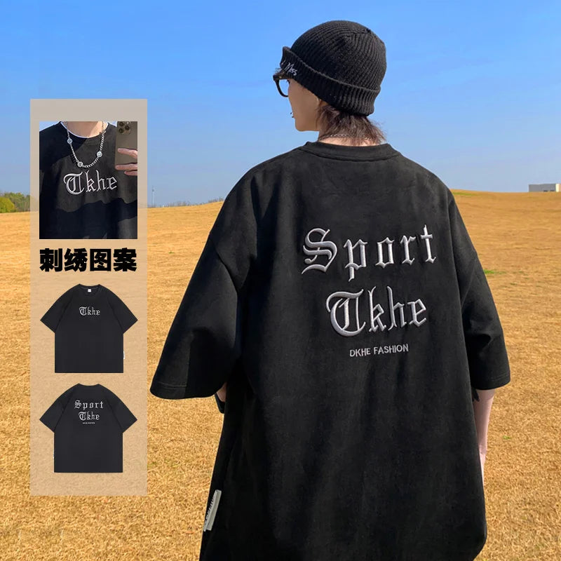 Wiaofellas - American Retro Suede Short Sleeve T Shirts Men Women Casual Oversized T Shirt Summer Ins Y2k Fashion Trend Loose Couple Tops Tee
