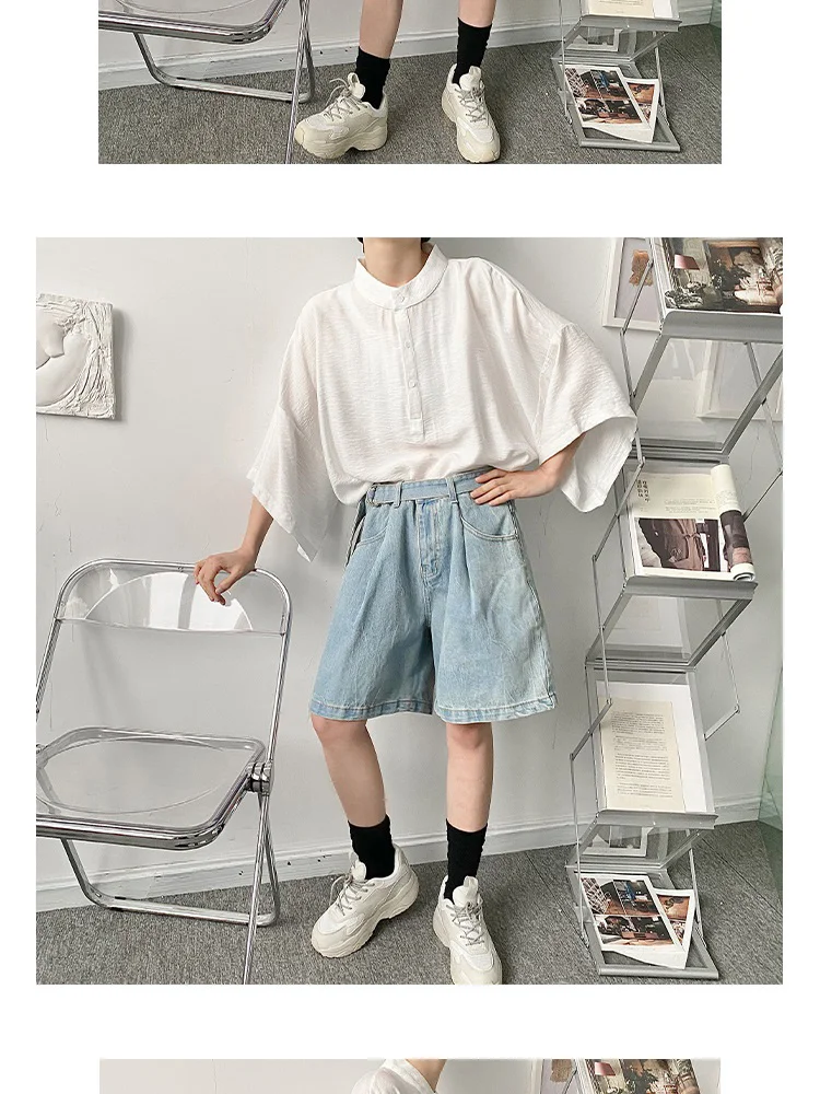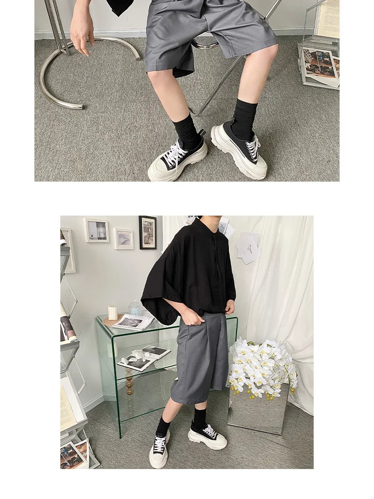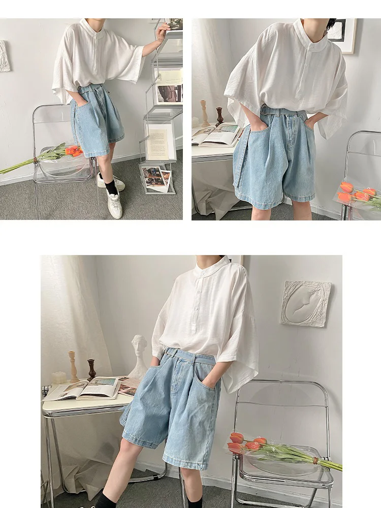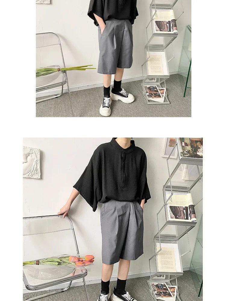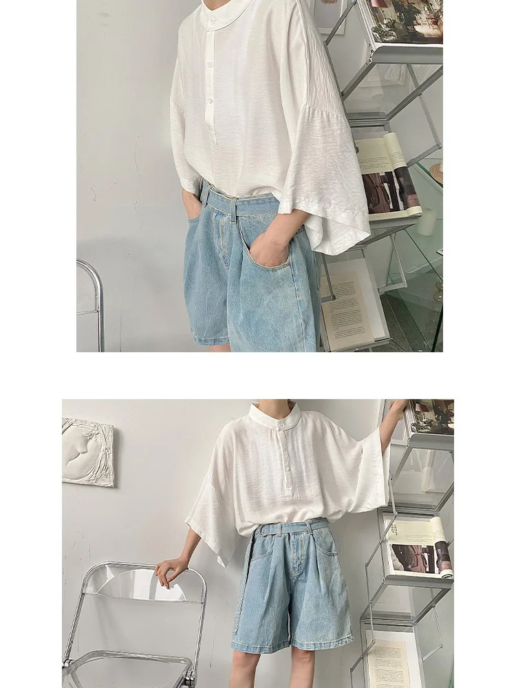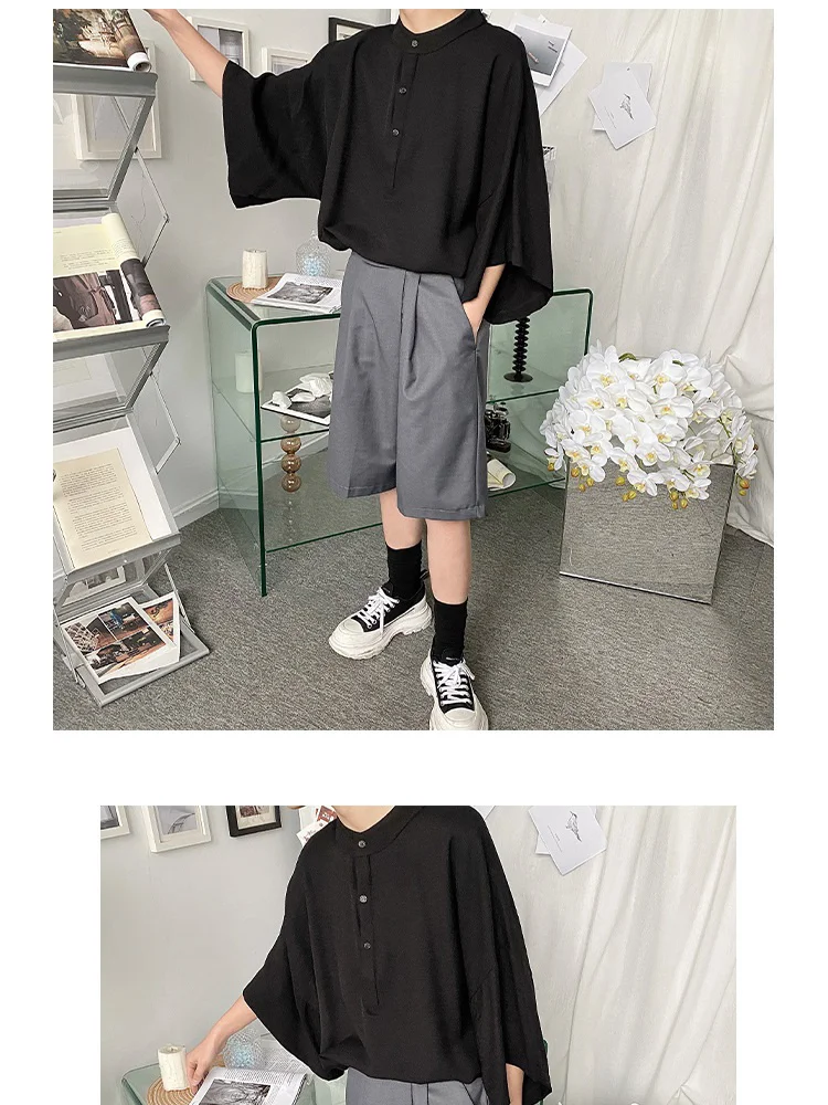 Wiaofellas - Casual Men's Solid Color Shirt Wrinkle Fabric Shoulder Sleeve Collar Button Korean Style New Fashion Blouse 2Y8380
