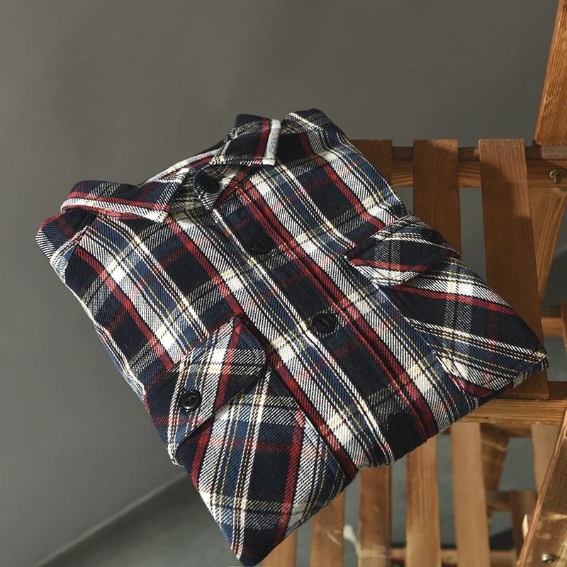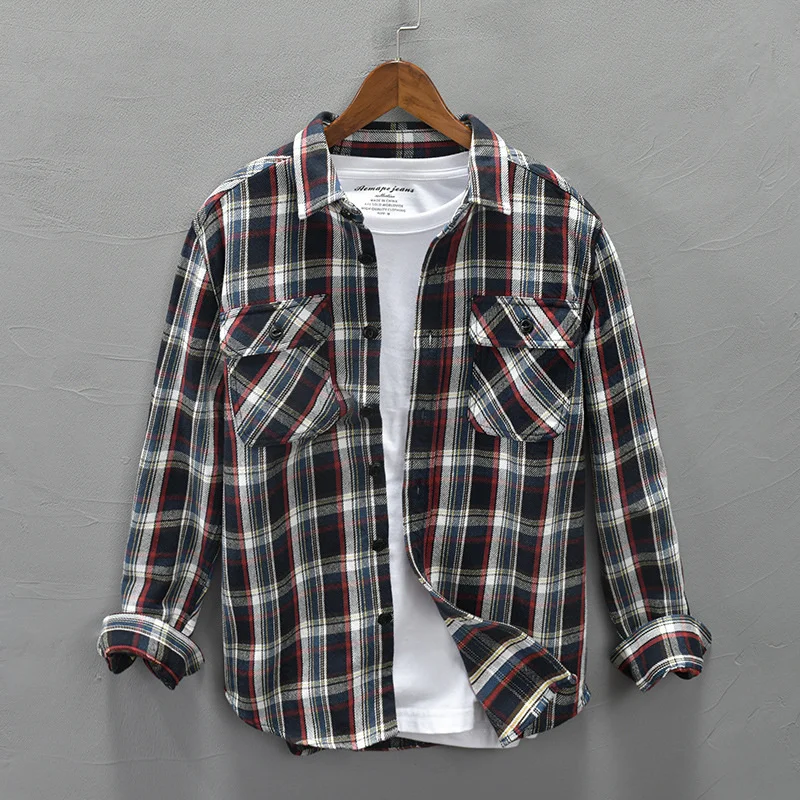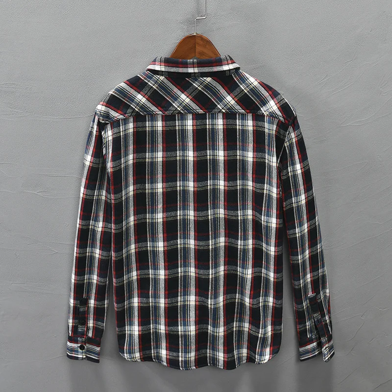 Wiaofellas - Casual Slim Turn-down Collar Mens Shirts Vintage Plaid Shirt Fashion Printed Buttoned Coat Men Autumn Spring Streetwear Tops