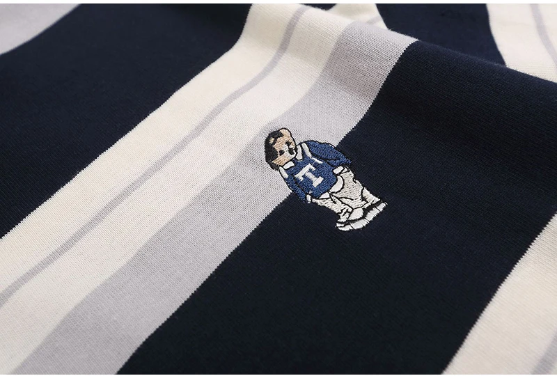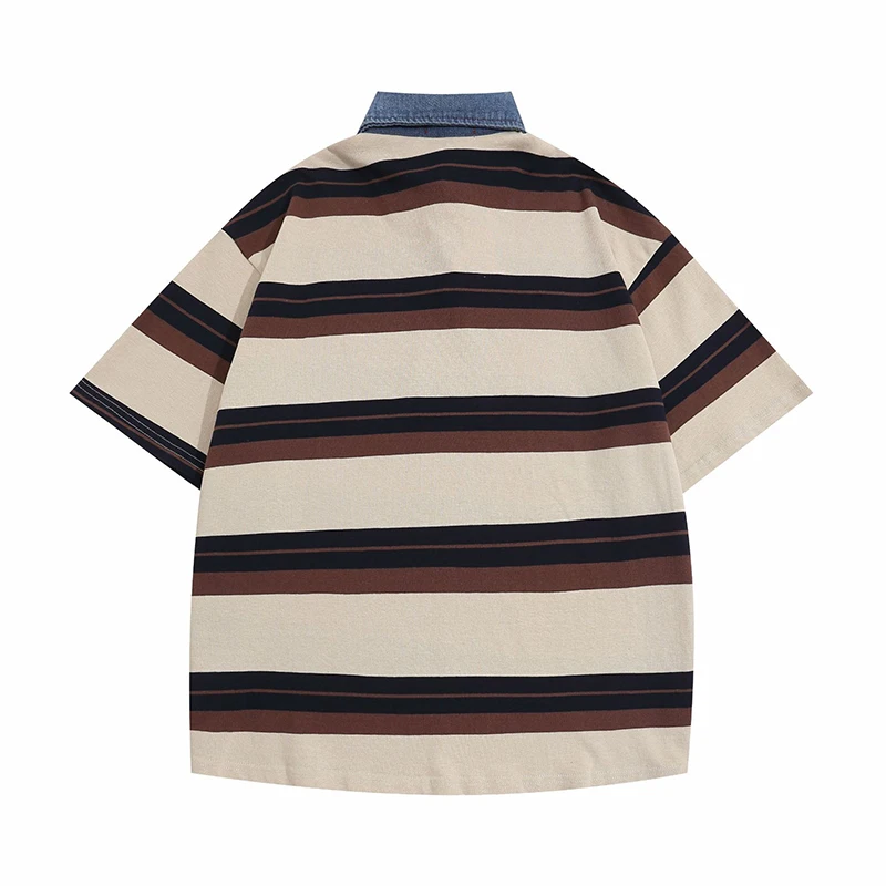 Wiaofellas - Contrast Paneled Denim Polo Shirt Mens Streetwear Striped College Casual Top Summer Short Sleeve Couple T-shirt Men polo homem