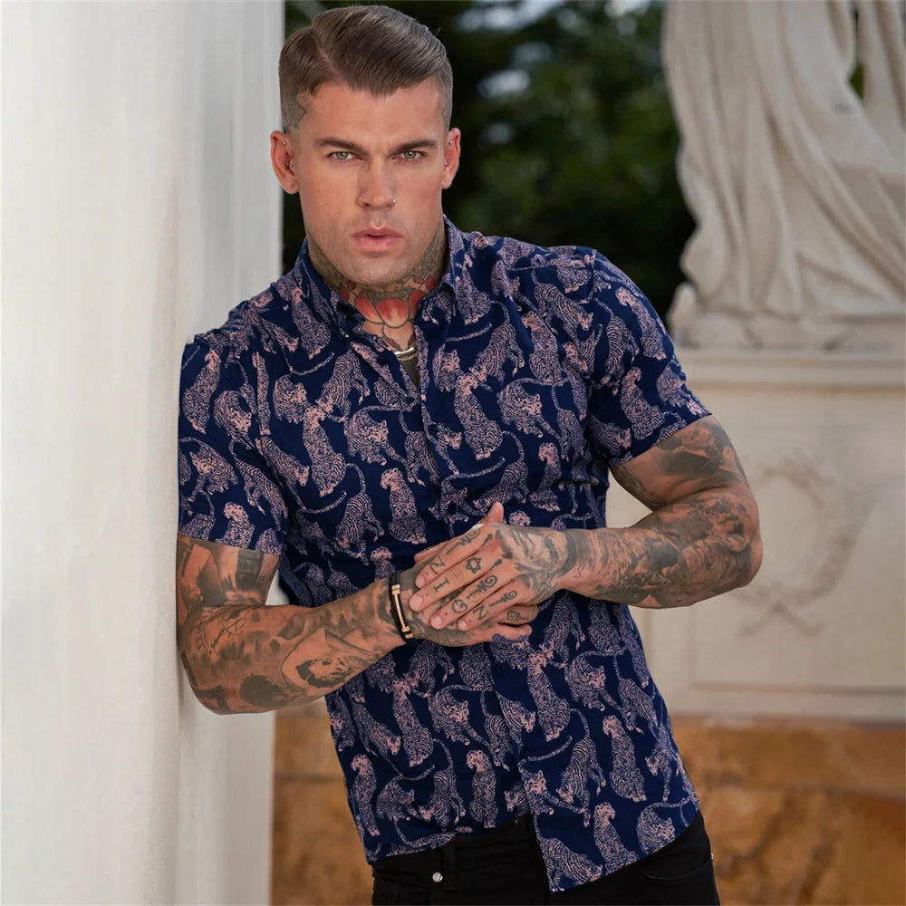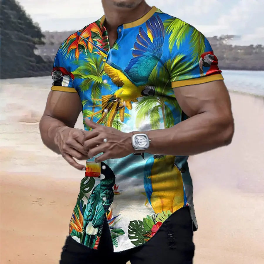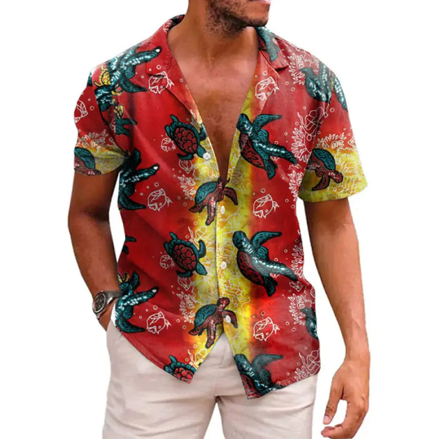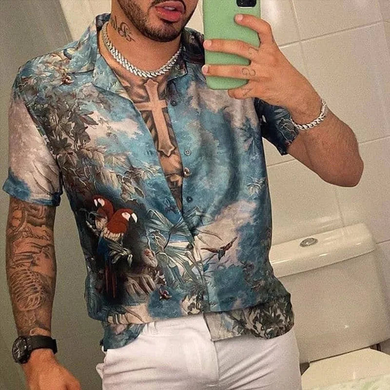Wiaofellas - Flower shirt, casual short sleeved polo shirt, irregular casual shirt, men's breathable polo shirt, men's clothing