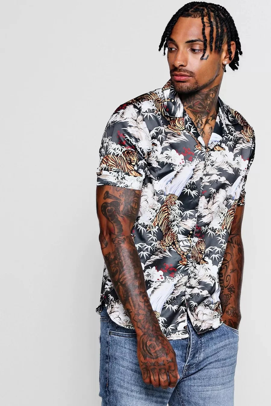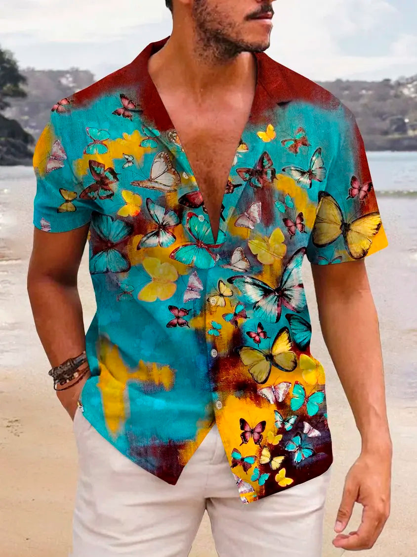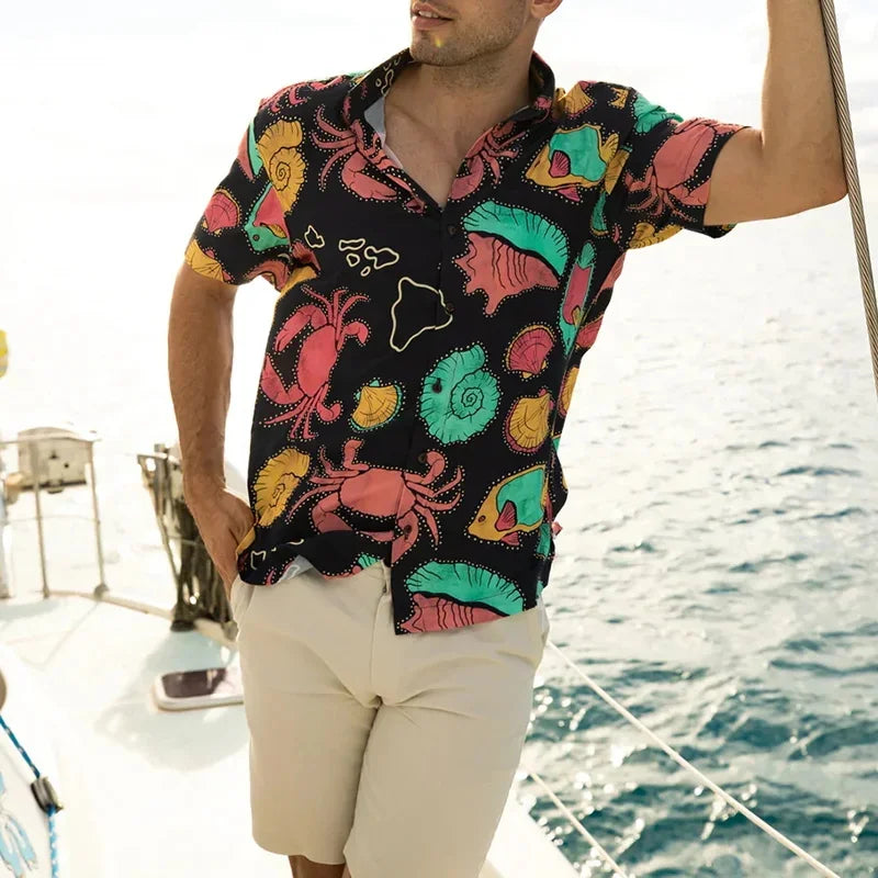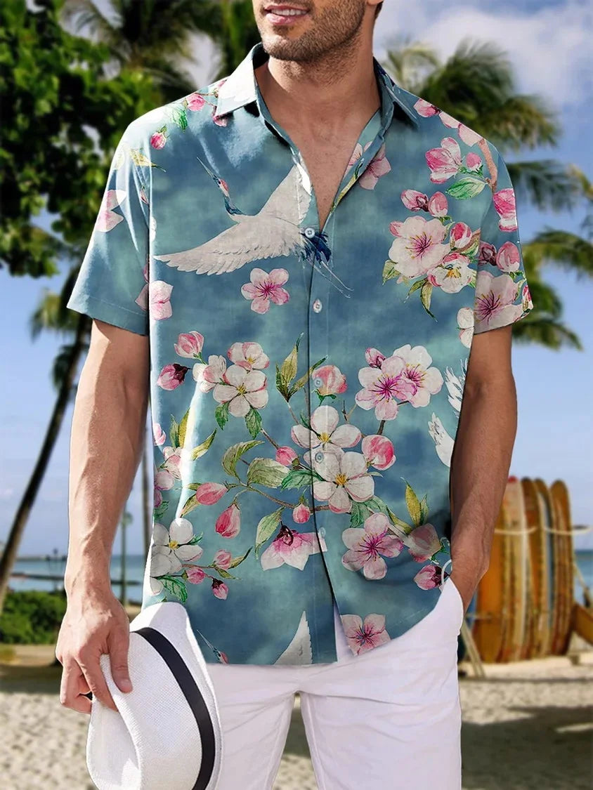 Wiaofellas - Flower shirt, casual short sleeved polo shirt, irregular casual shirt, men's breathable polo shirt, men's clothing