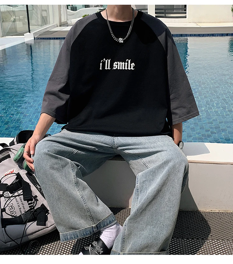 Wiaofellas - Gothic Patchwork T-Shirt Men Summer Men's Oversized T-Shirt Letter Pattern Round Neck T Shirts Loose Casual Unisex Tops Tee