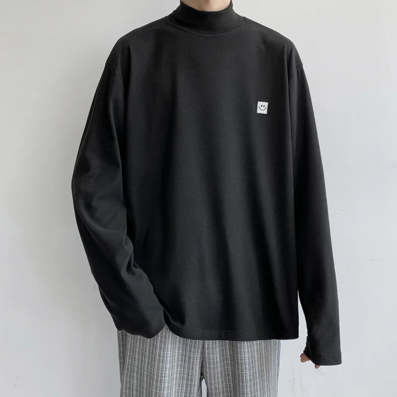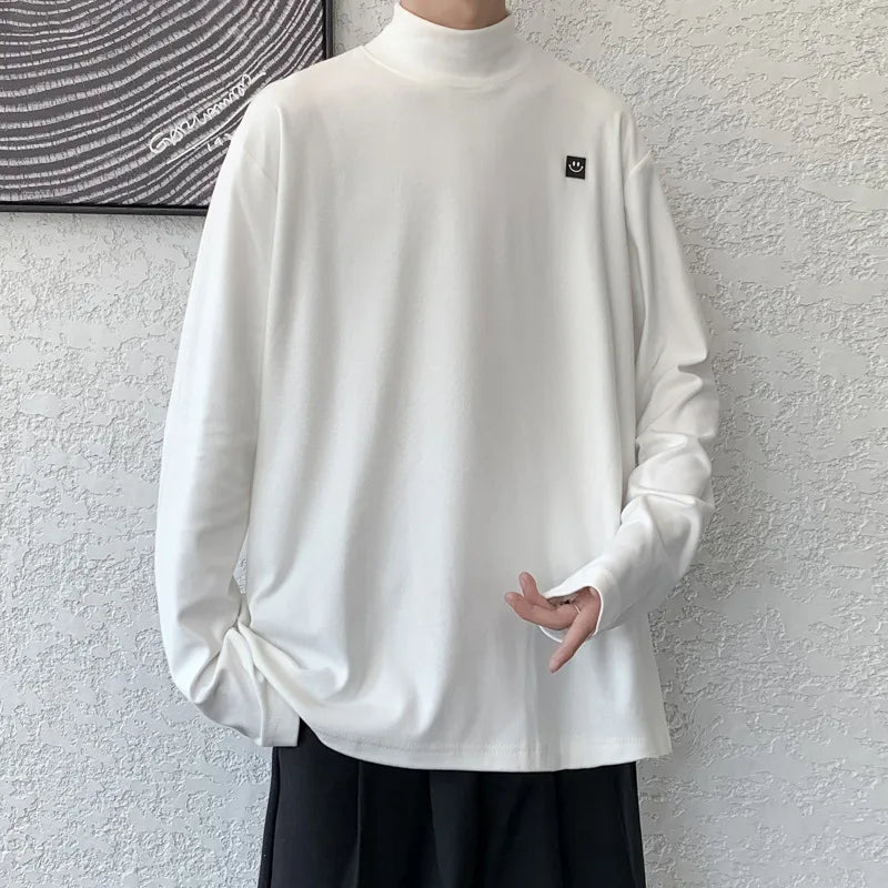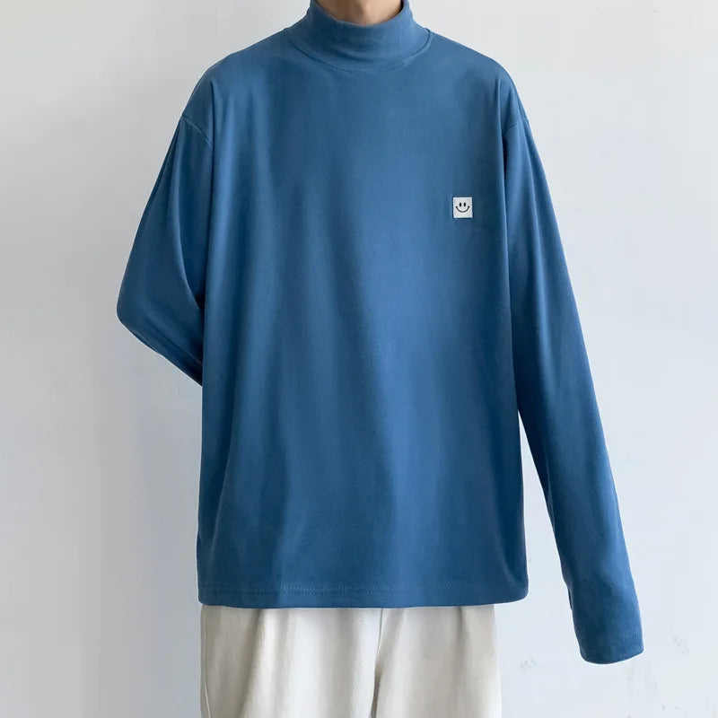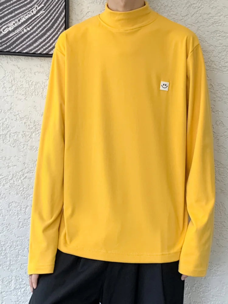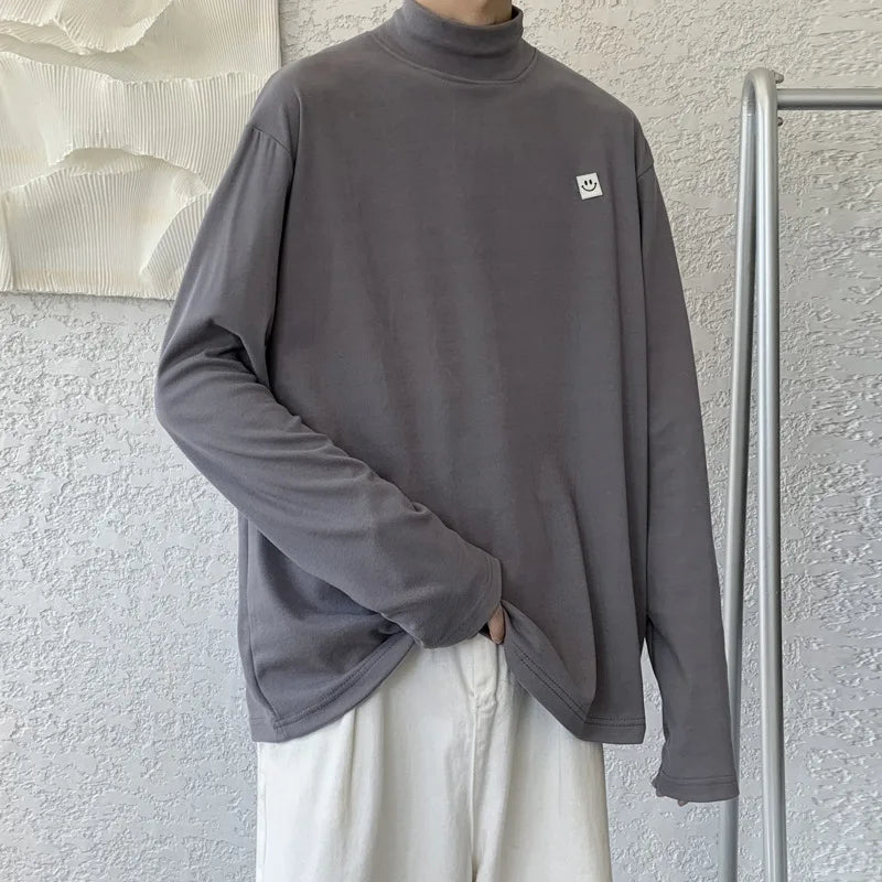Wiaofellas - Autumn and Winter Solid Color T-shirt High Neck Long-sleeved T-shirt Men's T-shirt Loose T-shirt