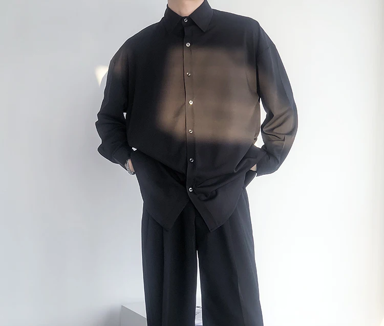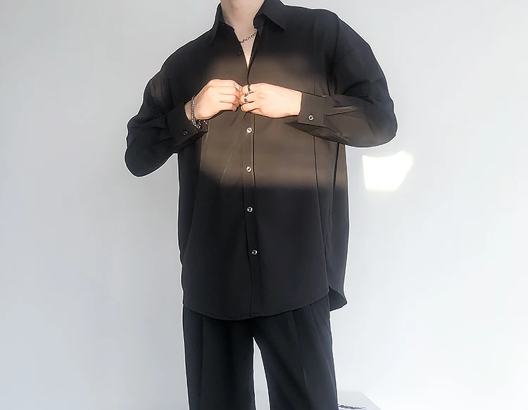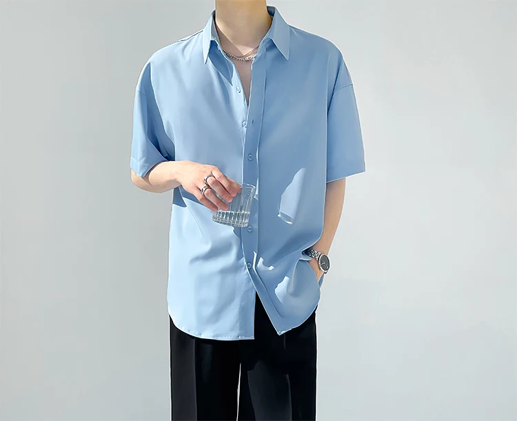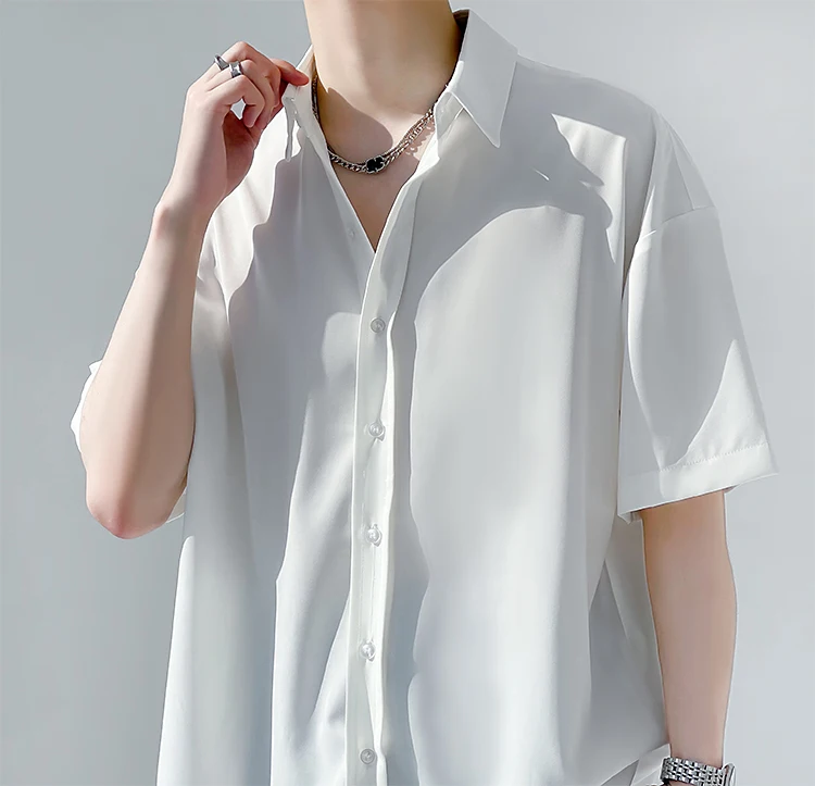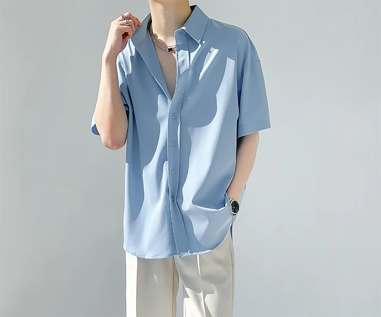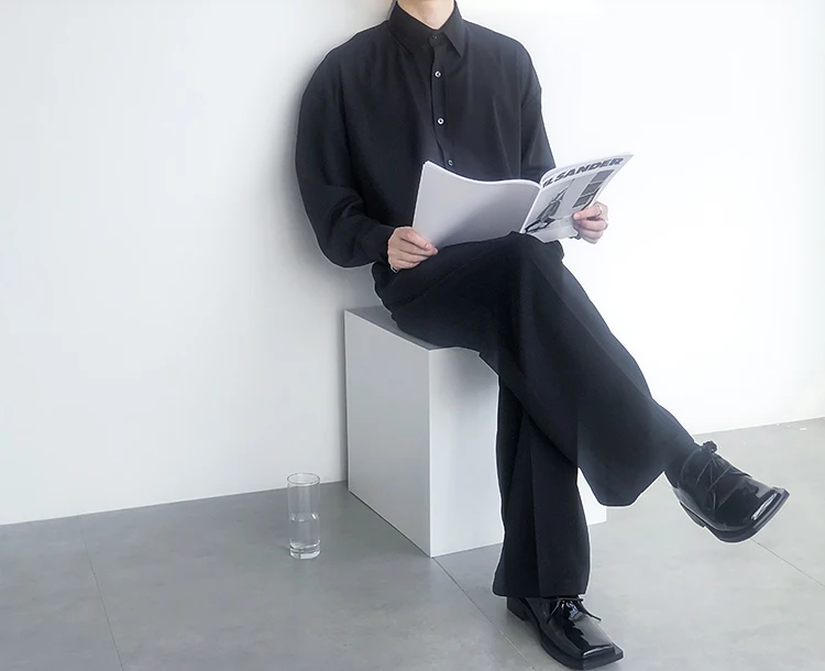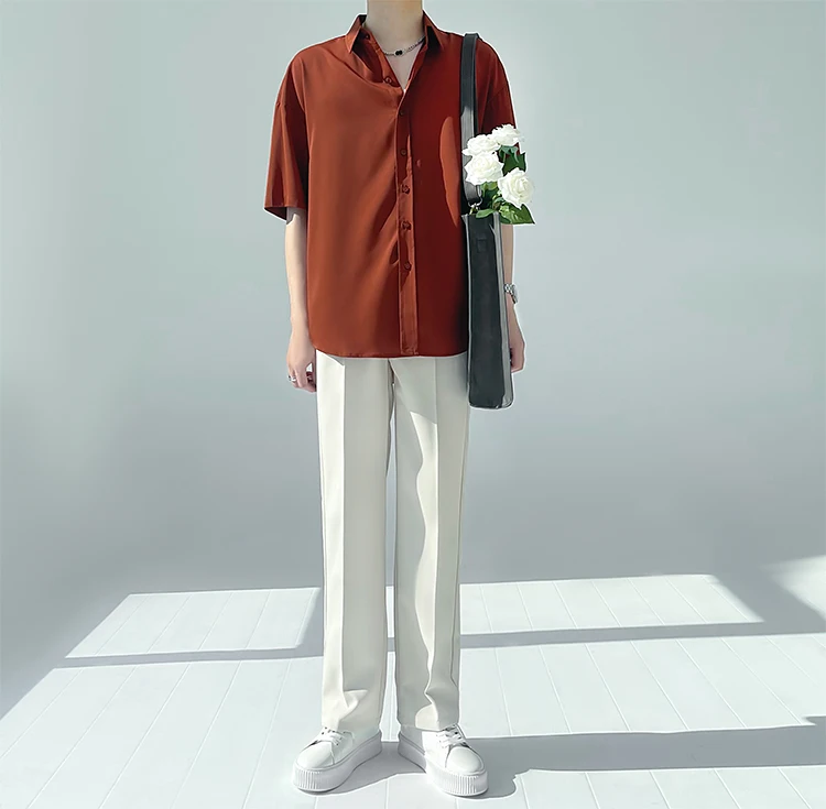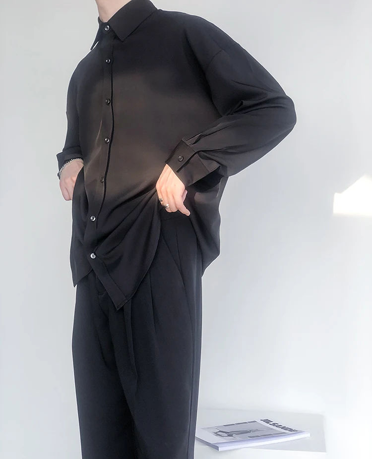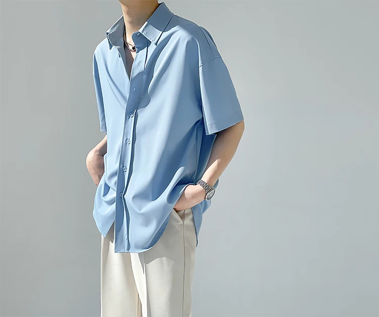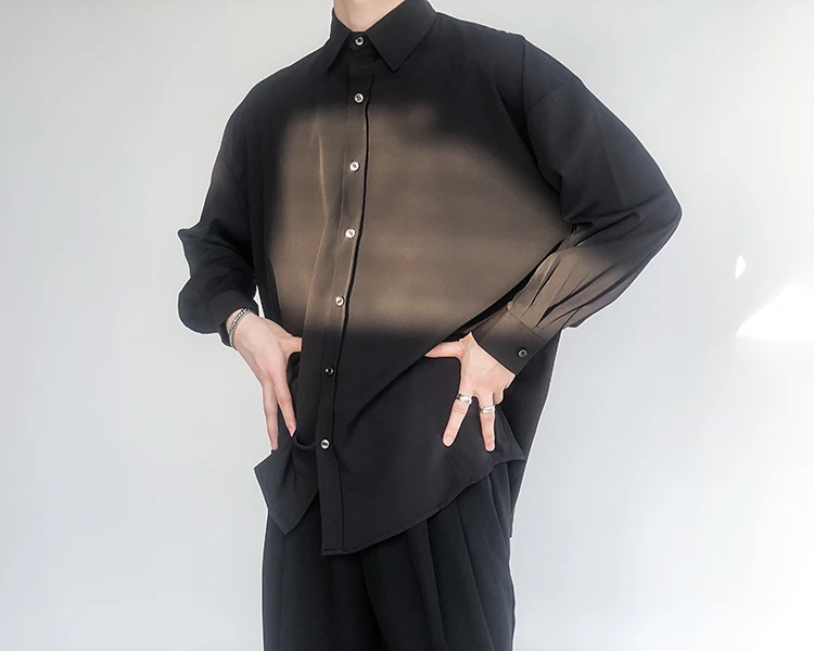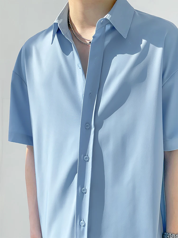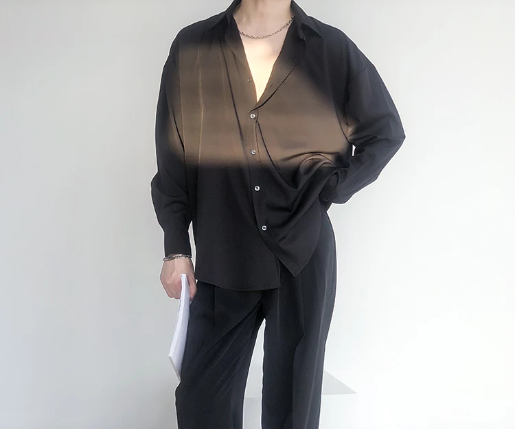 Wiaofellas  -  Men Anti Wrinkle Handsome Luxury Ice Silk Top Blouse Coffee Green Solid Plain Quality Ins England Vintage Long Sleeve Boy ShirtsProduct Information
