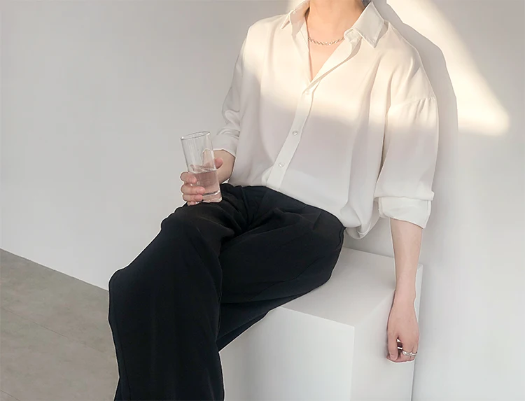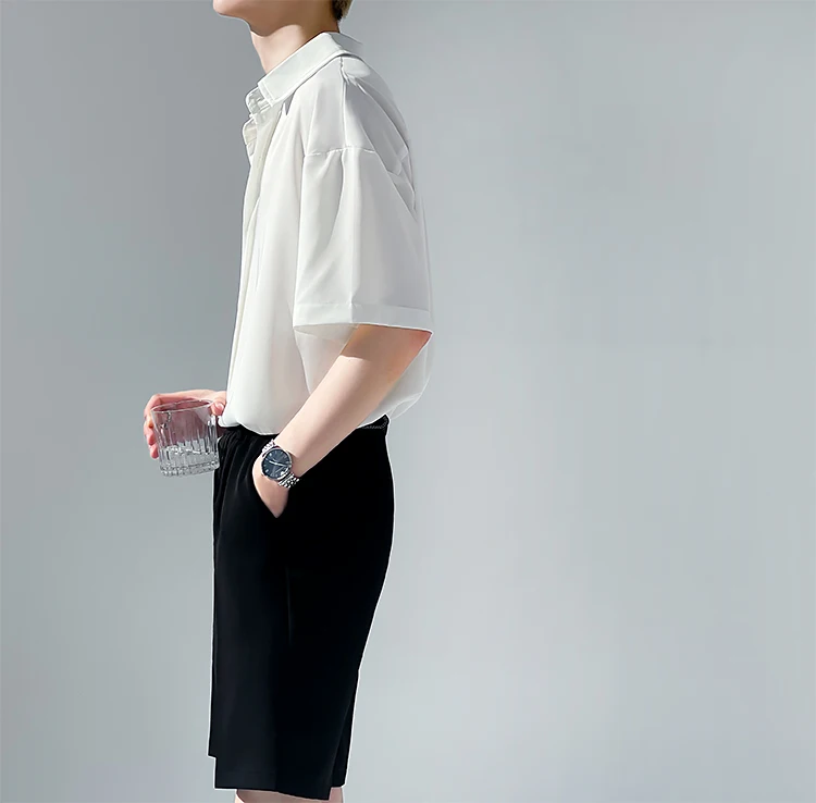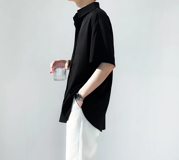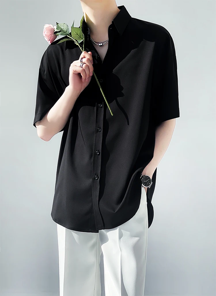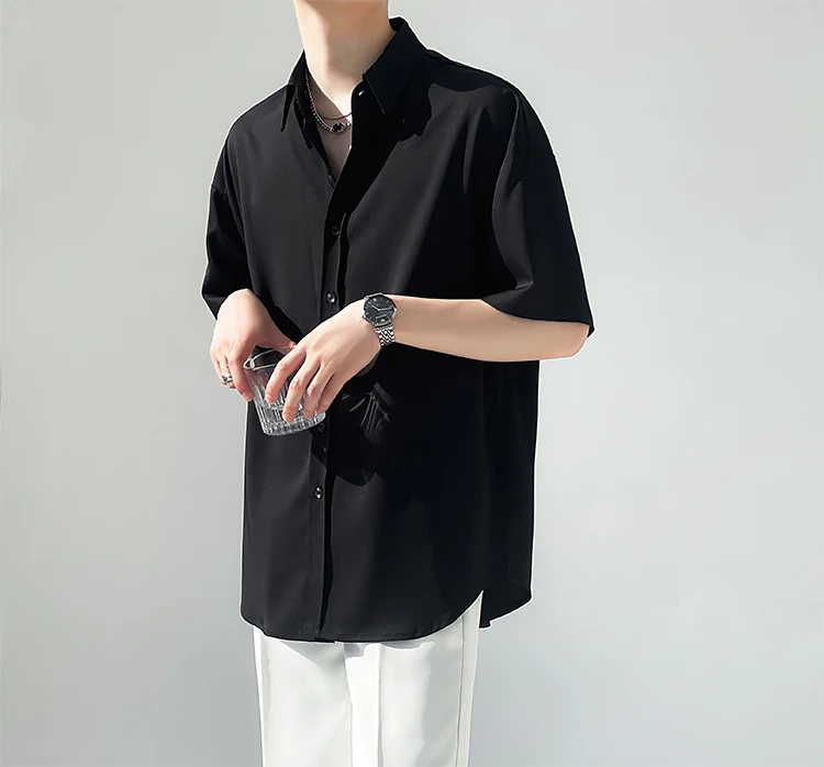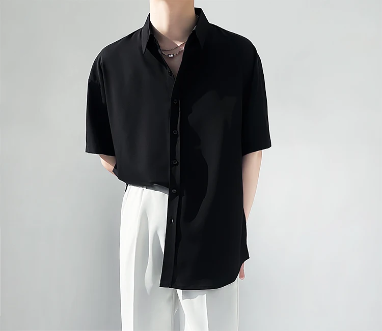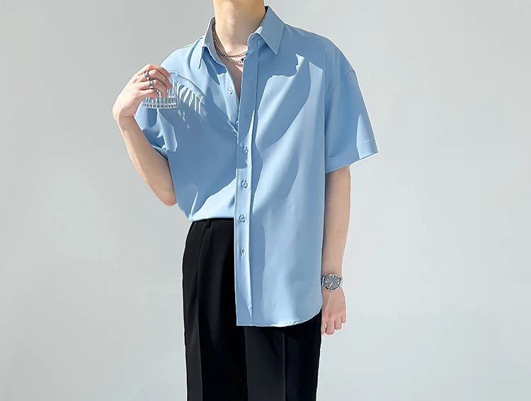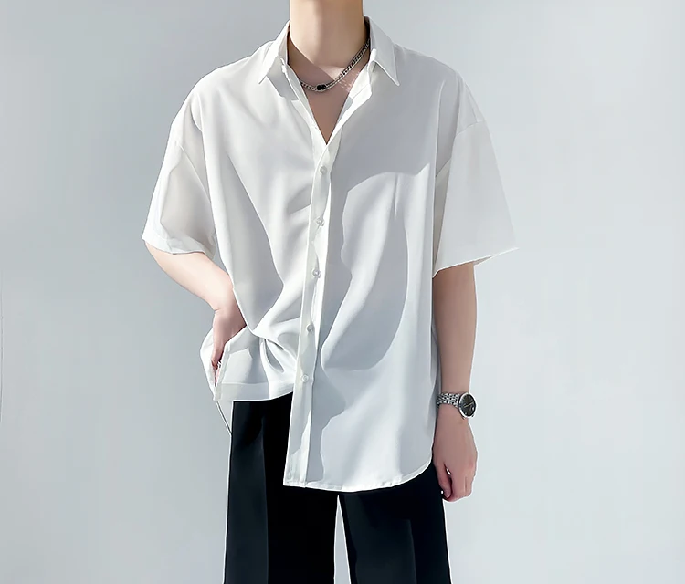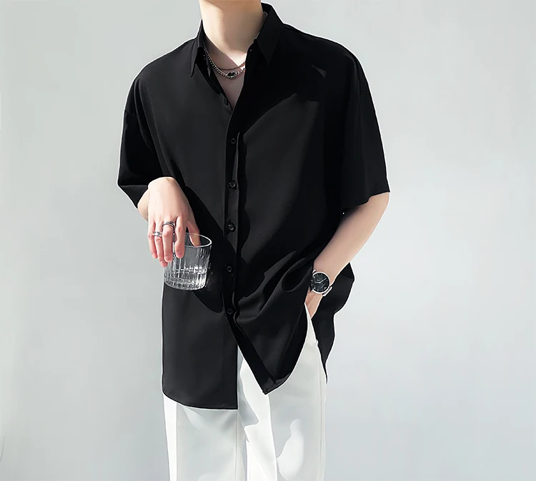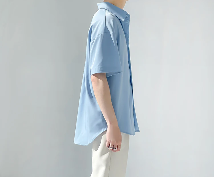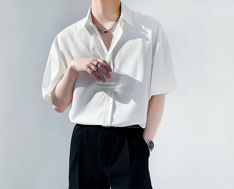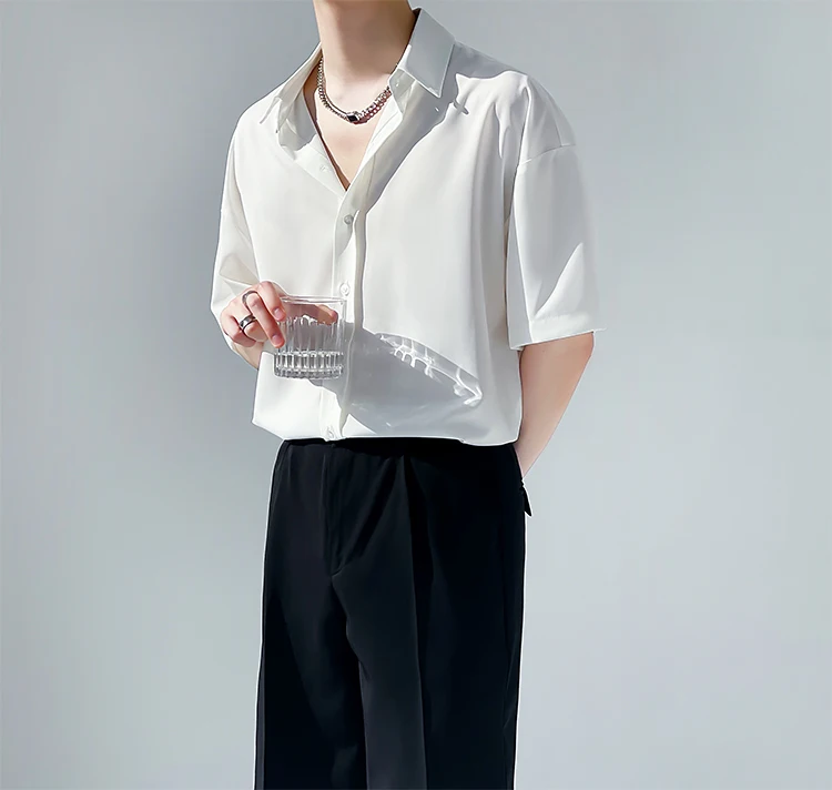 Wiaofellas  -  Men Anti Wrinkle Handsome Luxury Ice Silk Top Blouse Coffee Green Solid Plain Quality Ins England Vintage Long Sleeve Boy ShirtsProduct Information