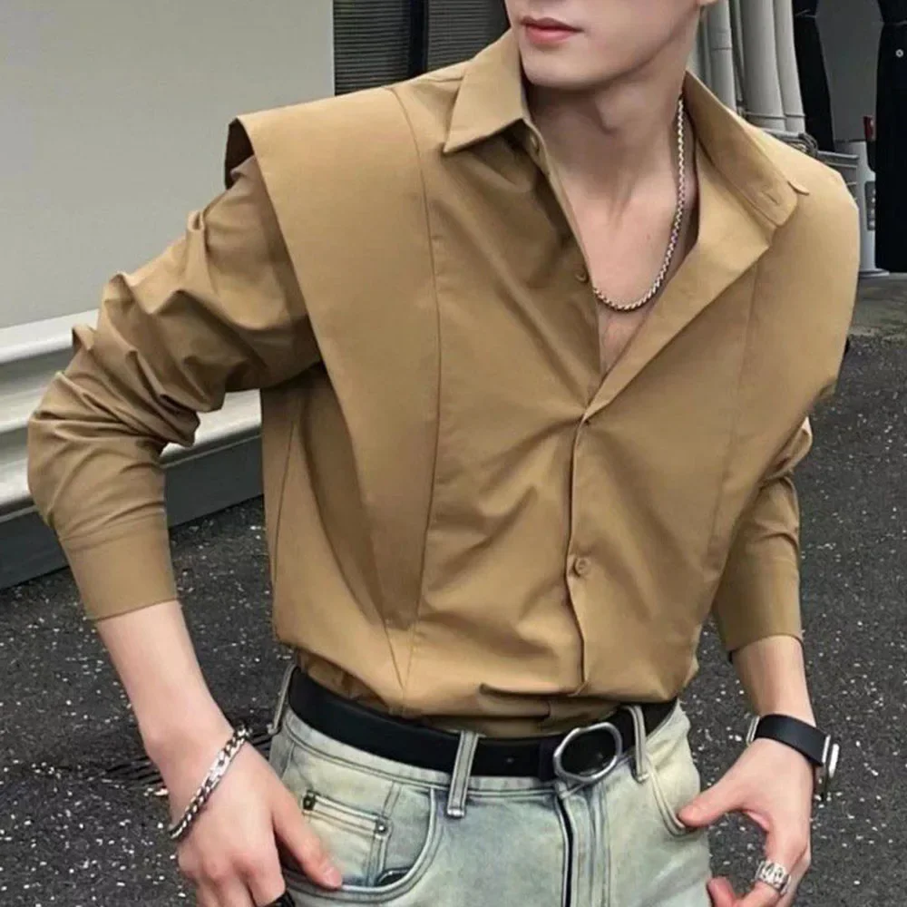 Wiaofellas - Mens Casual Square Neck Shirt Fashion Solid Color High Quality Simple Streetwear Party Long Sleeve Top Mens Clothing New